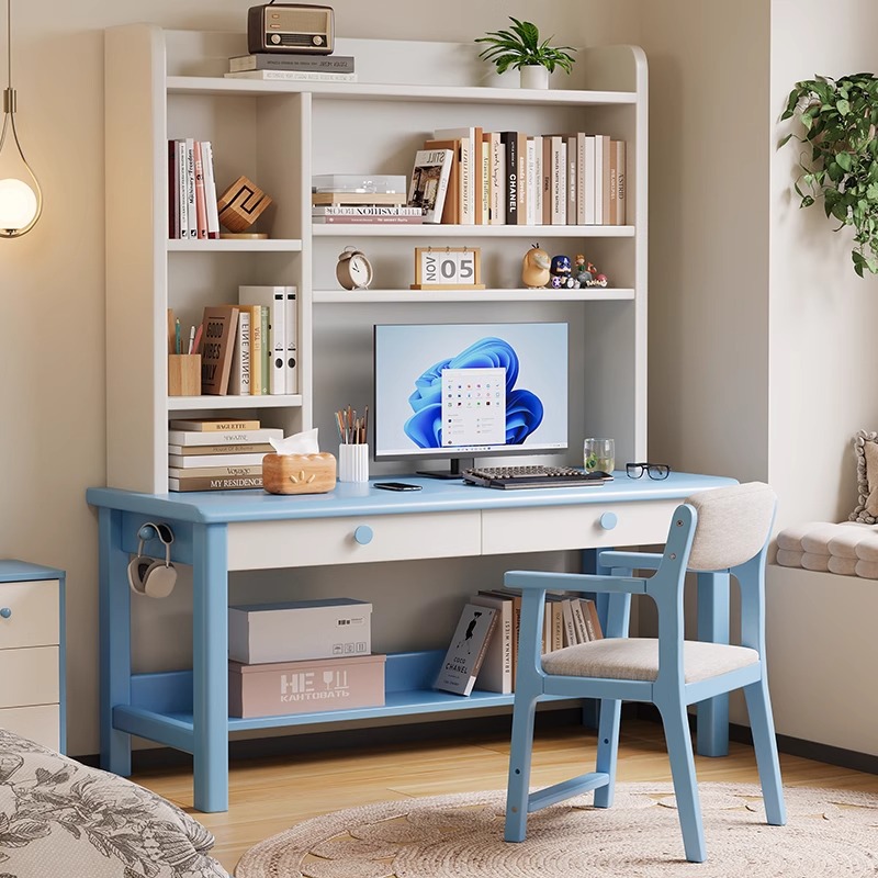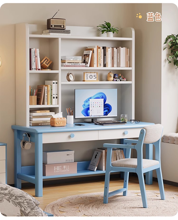 • 파란색과 흰색 테이블 + 높은 책장 [엄선된 두꺼운 목재]