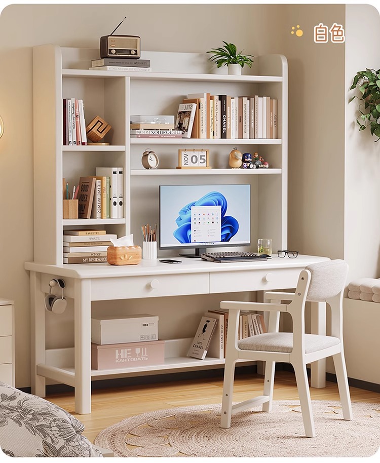 • 화이트 테이블 + 키 큰 책장 [엄선된 두꺼운 목재]