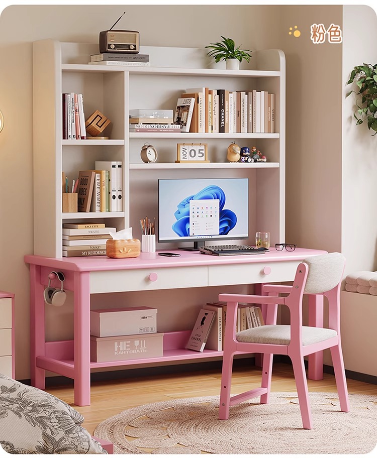 • 핑크와 화이트 테이블+16#리프트 의자 + 높은 책장 [엄선된 두꺼운 목재]