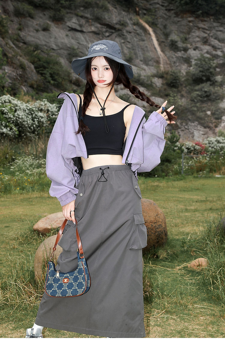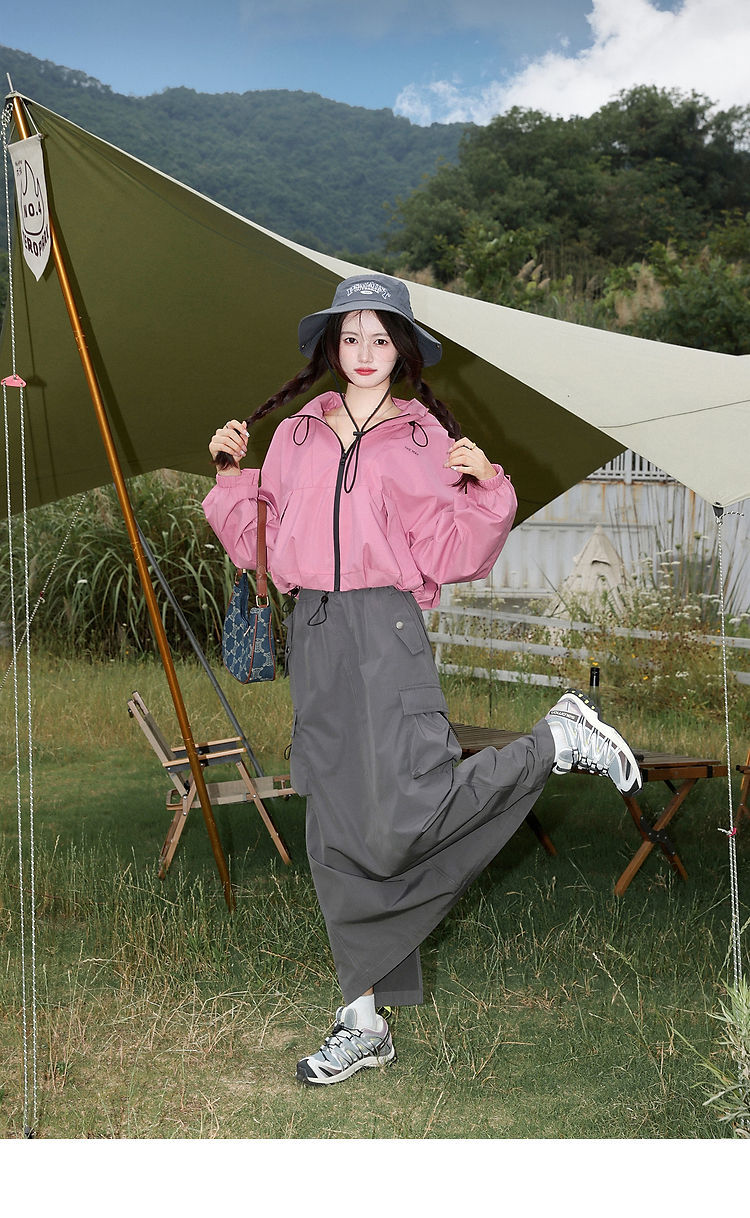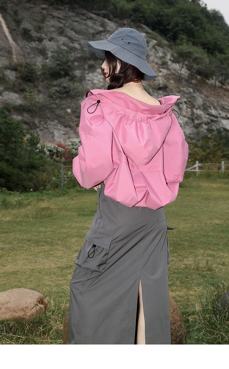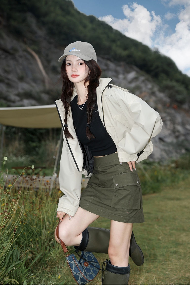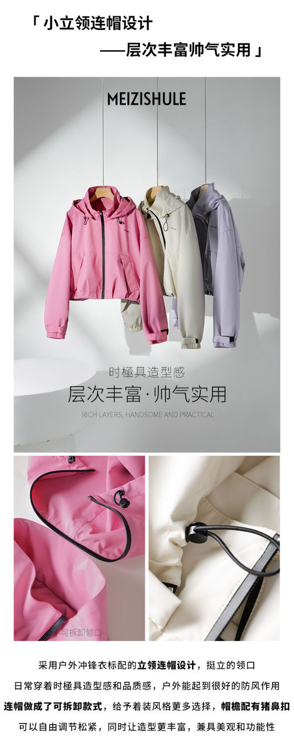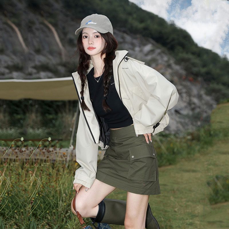 여성을위한 미국 스탠드 업 칼라 후드 작업 재킷 2025 봄, 가을 야외 방풍 짧은 재킷 스포츠 재킷