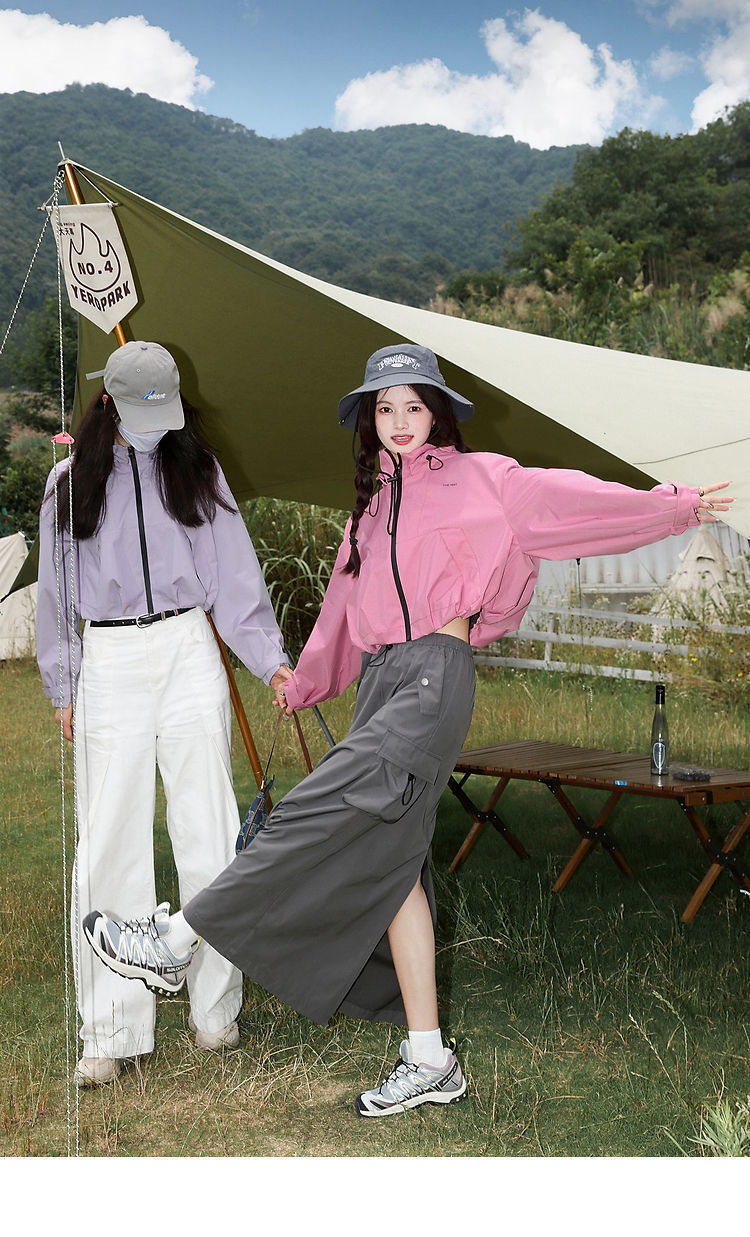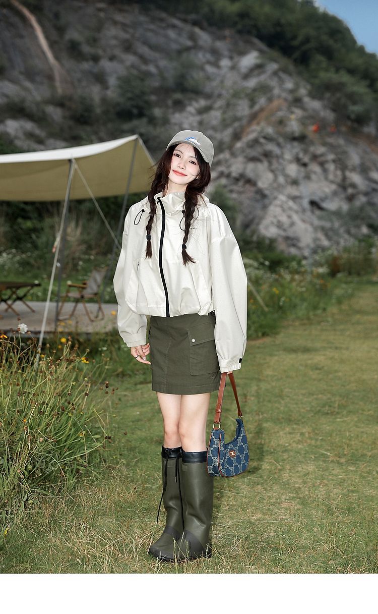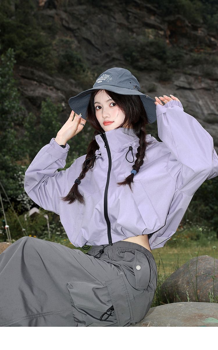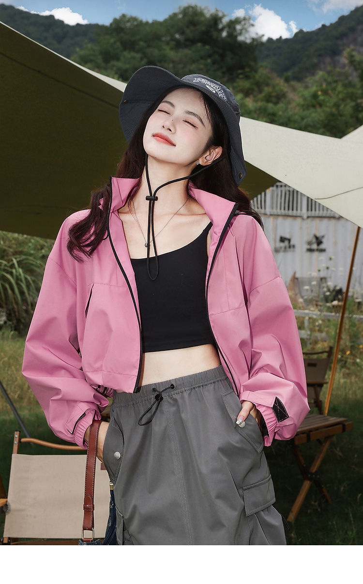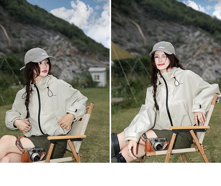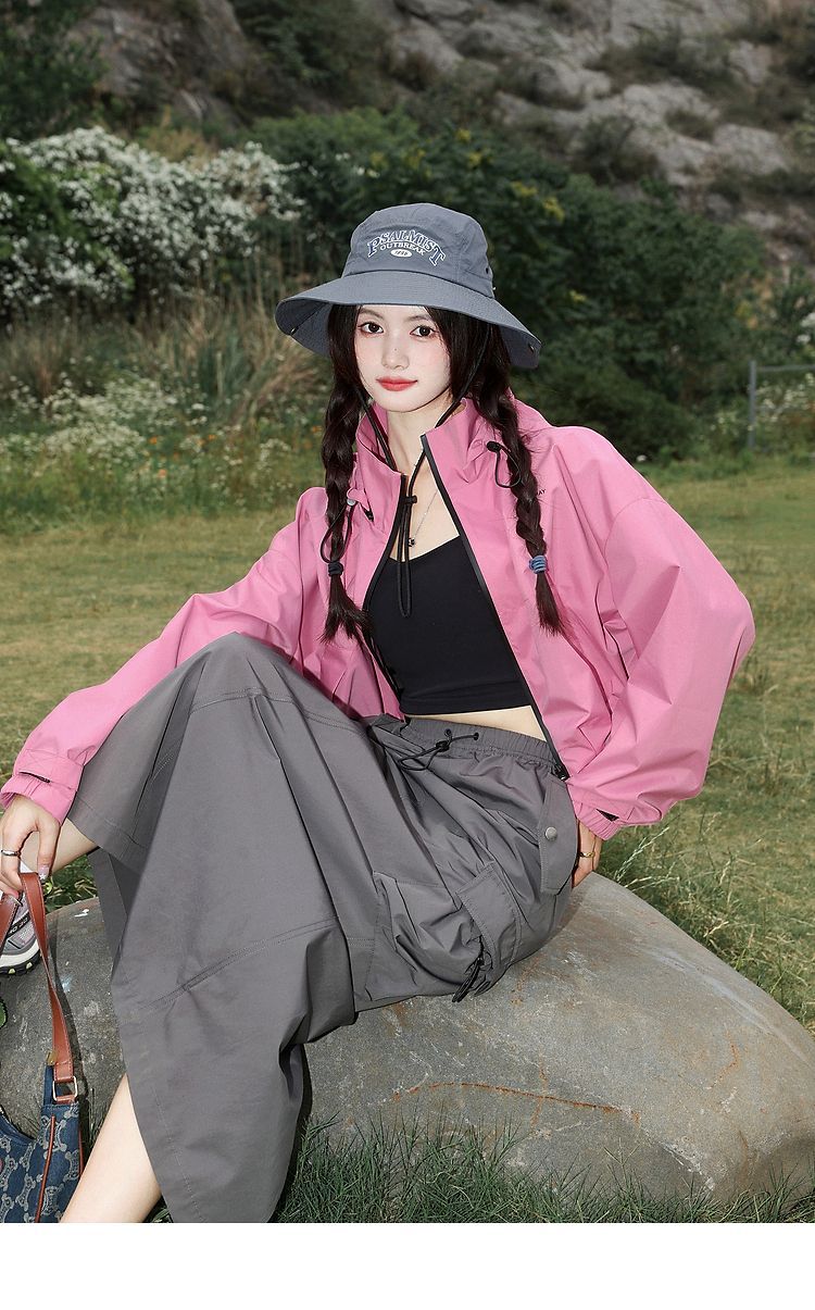 여성을위한 미국 스탠드 업 칼라 후드 작업 재킷 2025 봄, 가을 야외 방풍 짧은 재킷 스포츠 재킷스토어 가기