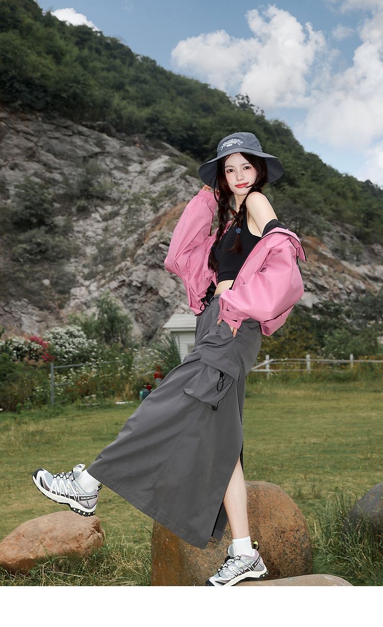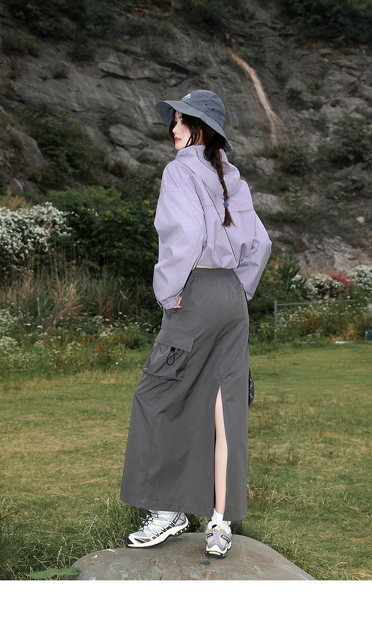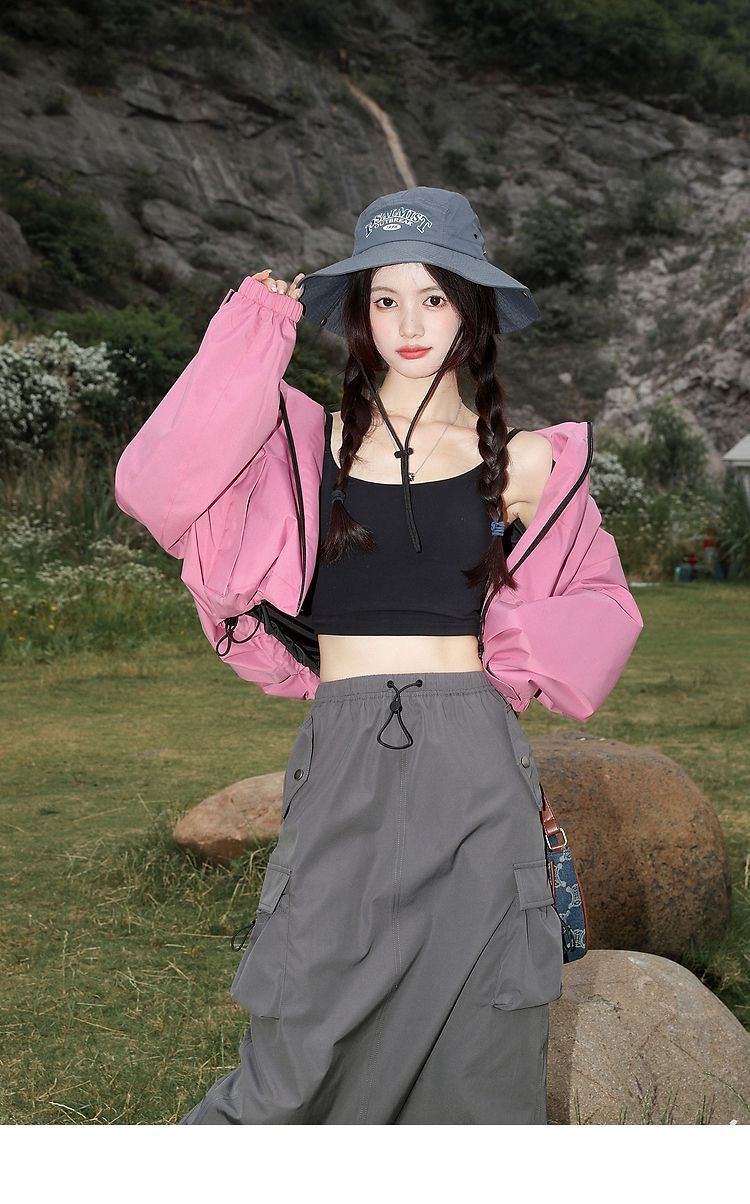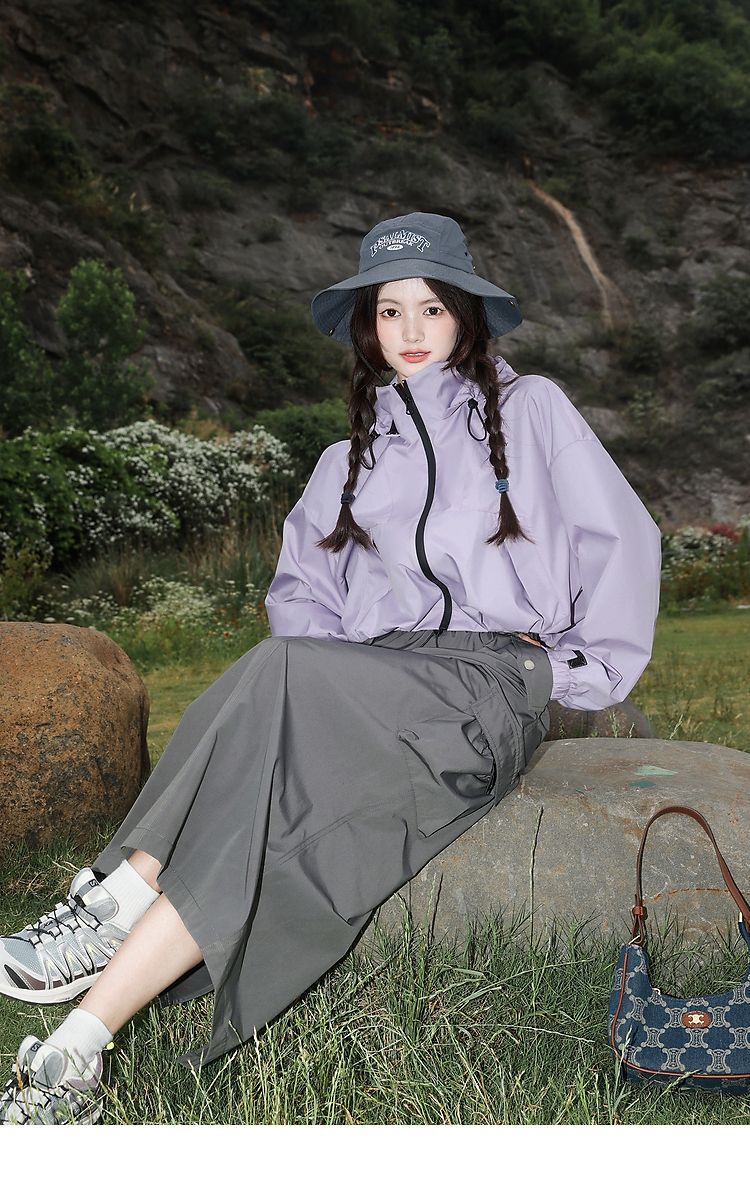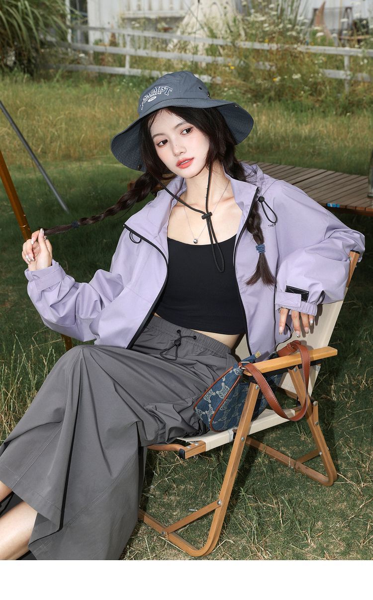 여성을위한 미국 스탠드 업 칼라 후드 작업 재킷 2025 봄, 가을 야외 방풍 짧은 재킷 스포츠 재킷스토어 가기