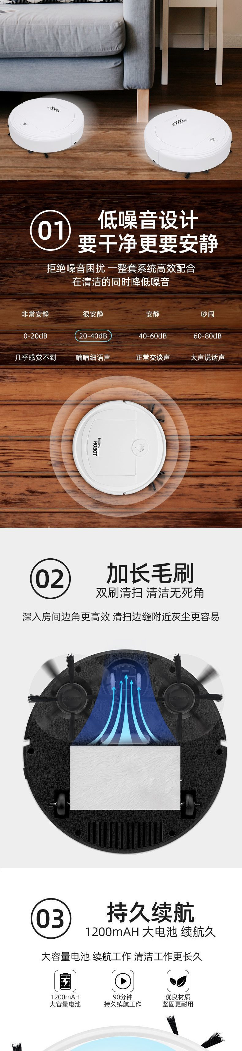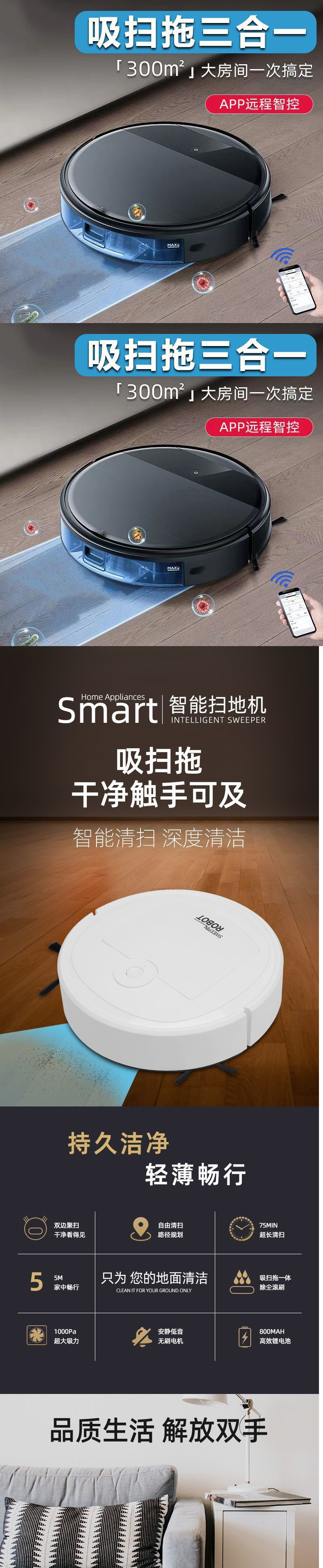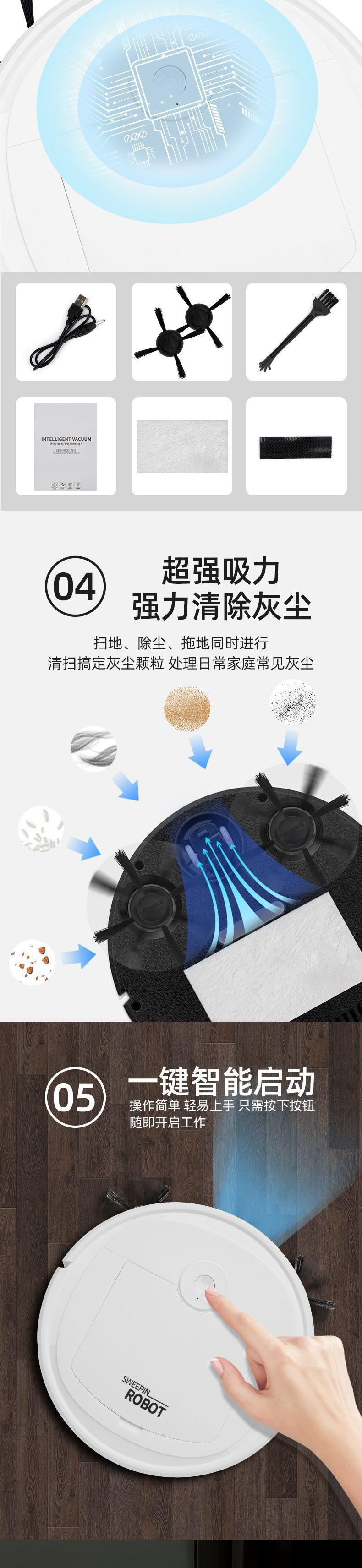스마트 스위퍼 로봇 3-in-1 가정용 청소 및 걸레질, 완전 자동 진공 청소 및 코너 청소, 높은 흡입력