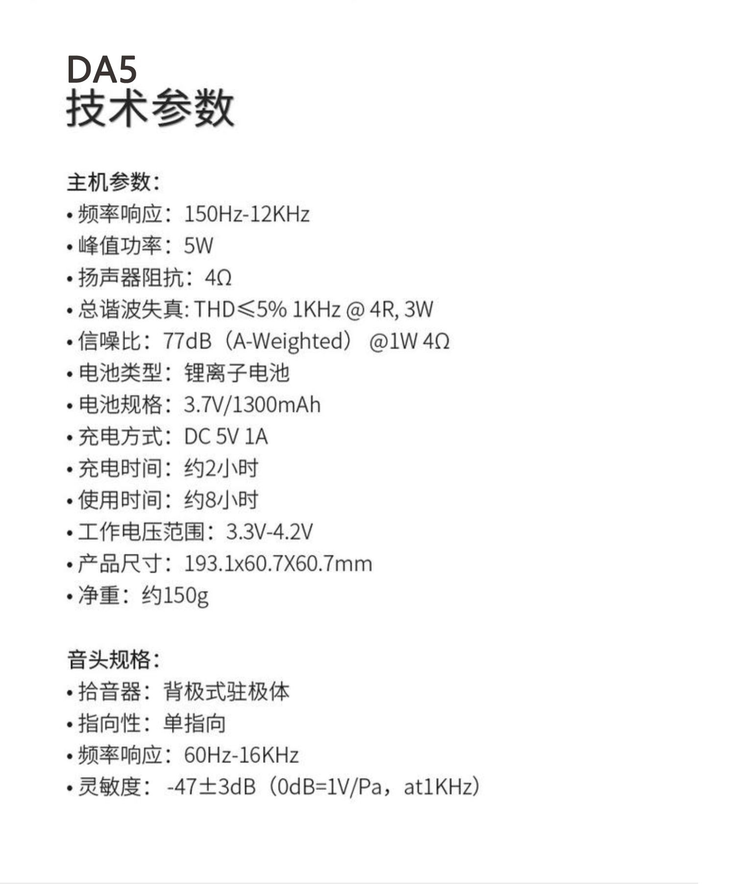 • DA5에는 [5W 대용량, 30~40인 교실에 적합]이 기본으로 제공됩니다.