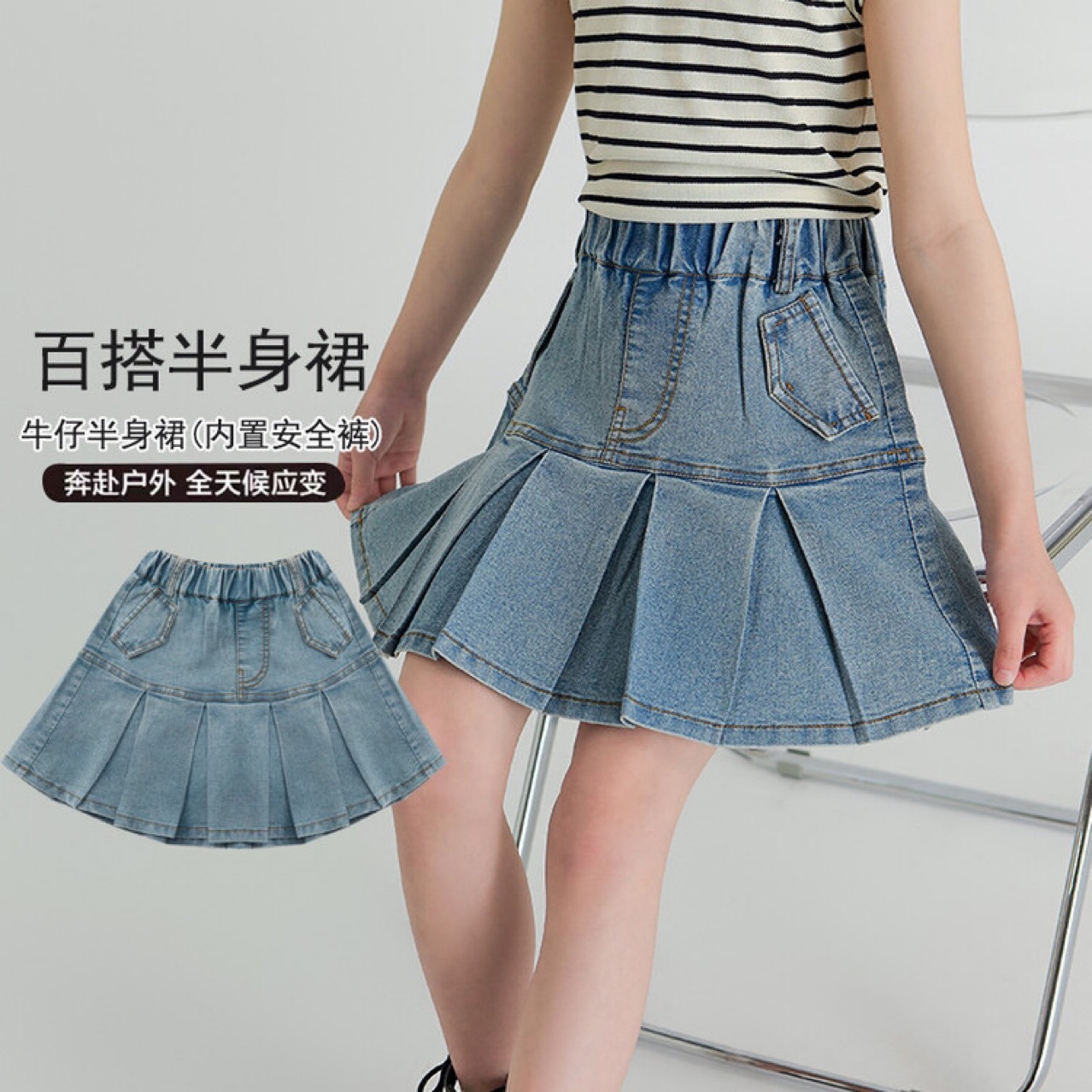여아 데님 스커트 여름 신작 스트레치 데님 스커트 여아 중대형 아동 패션 데님 스커트 트렌디스토어 가기