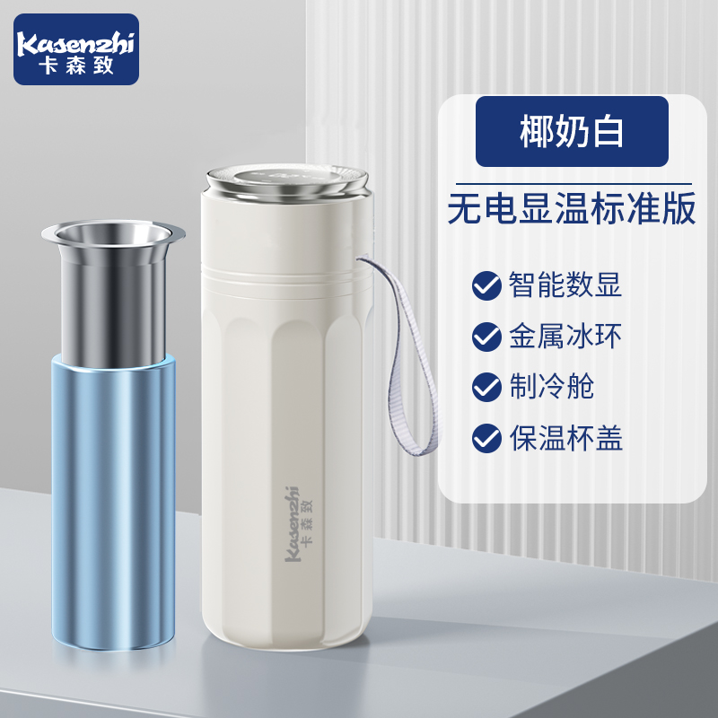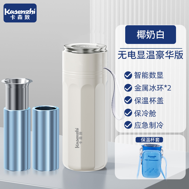 • [아이보리 화이트 온도 표시 사계절 디럭스 에디션 ★ 온도 조절] 냉장실 + 금속 아이스링 + 컵 슬리브 + 보조베터리, 3가지 용도