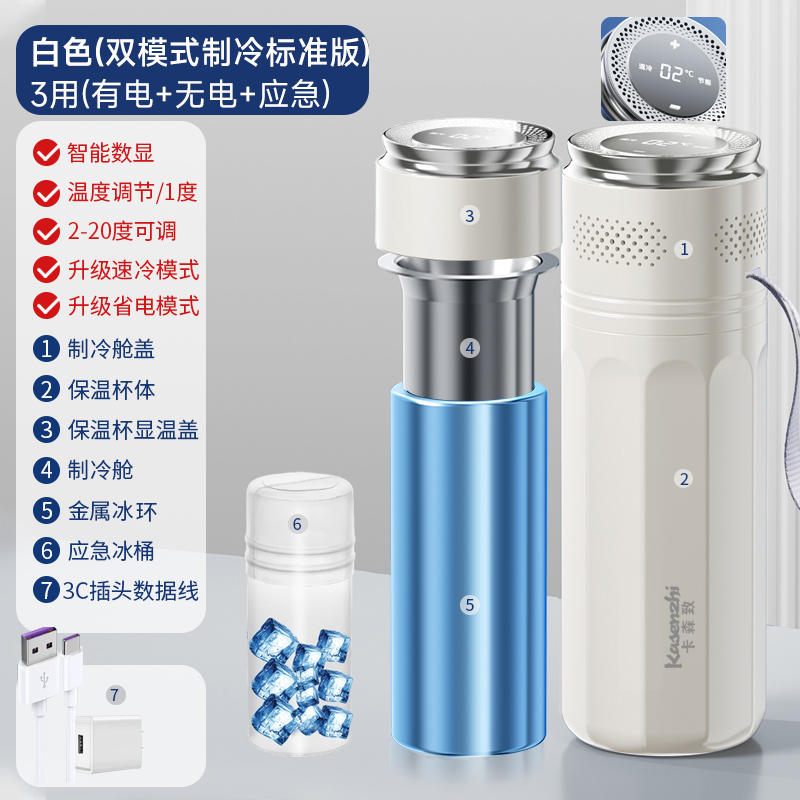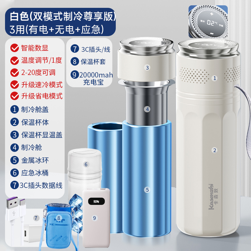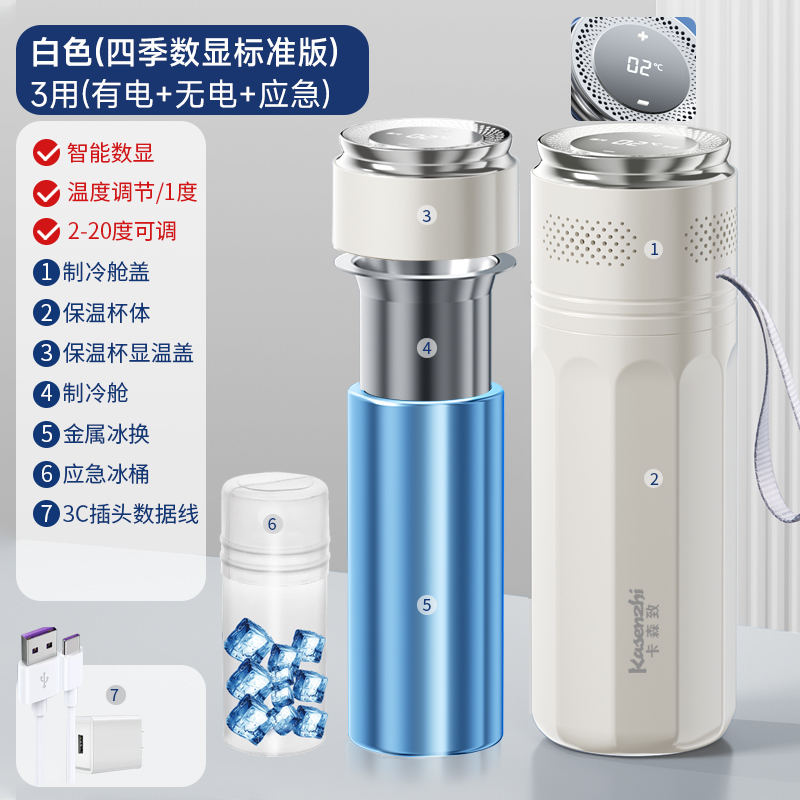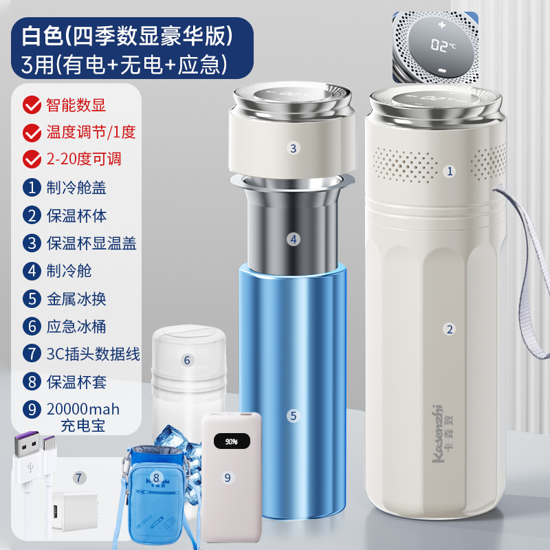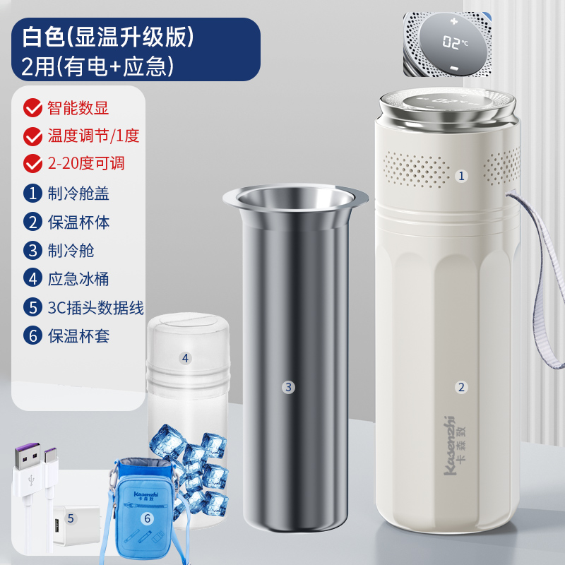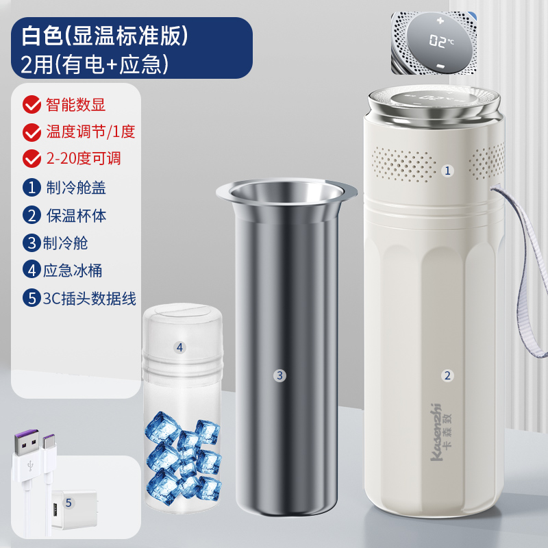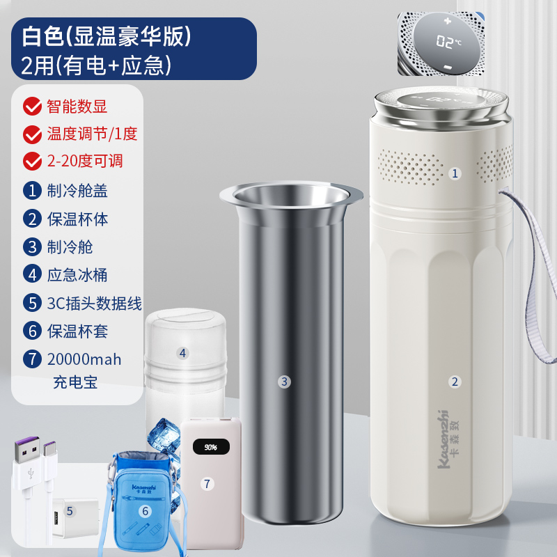 • [아이보리 화이트 온도 표시 겸용 디럭스 에디션 ★ 】냉장실 + 컵 커버 + 보조 배터리, 전기로 이중 사용 가능