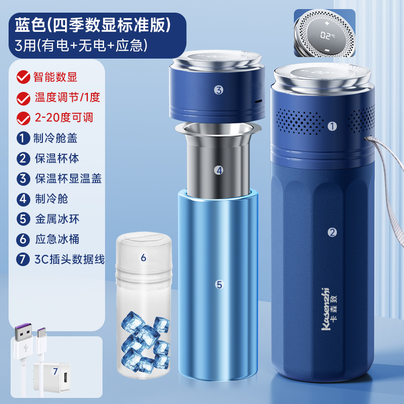 • [사계절 업그레이드 버전의 사파이어 블루 온도 표시 ★ 온도조절] 냉장실 + 금얼음링 + 컵커버, 3가지 용도