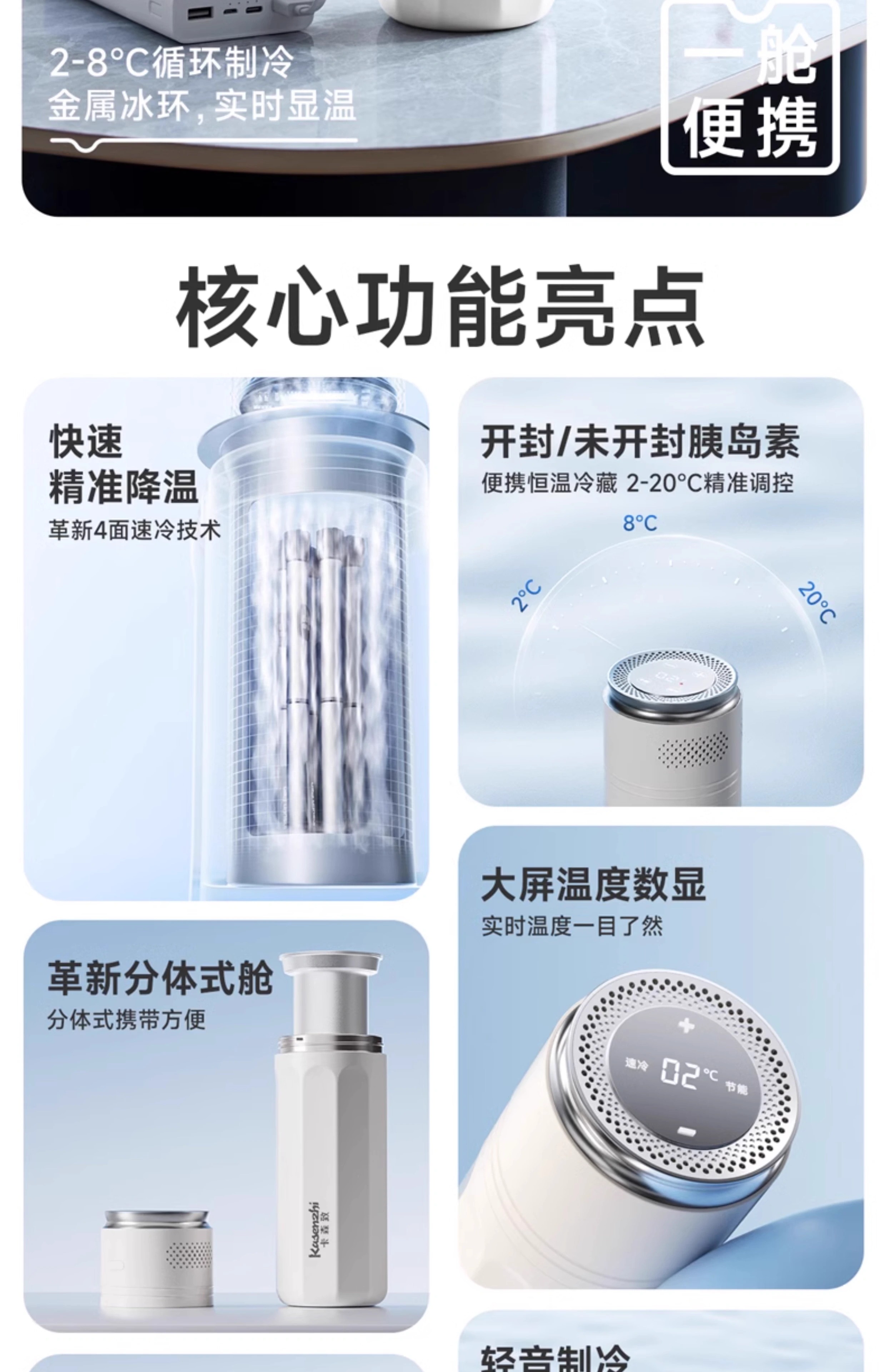 인슐린 냉장 상자 휴대용 충전식 자동차 소형 냉장고 성장 호르몬 소형 미니 의약품 휴대용 냉동 컵