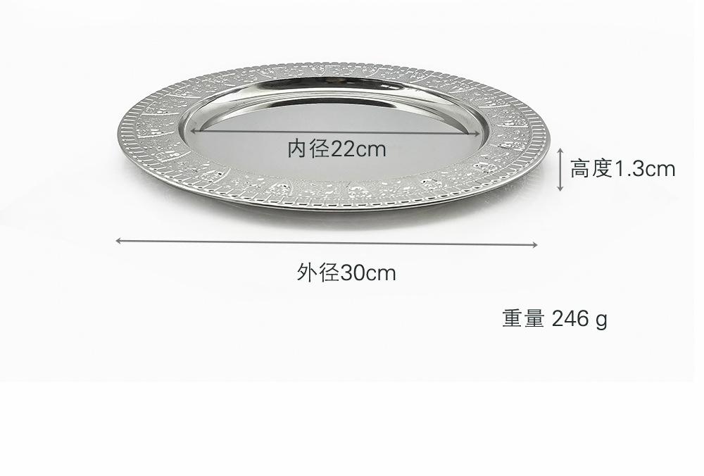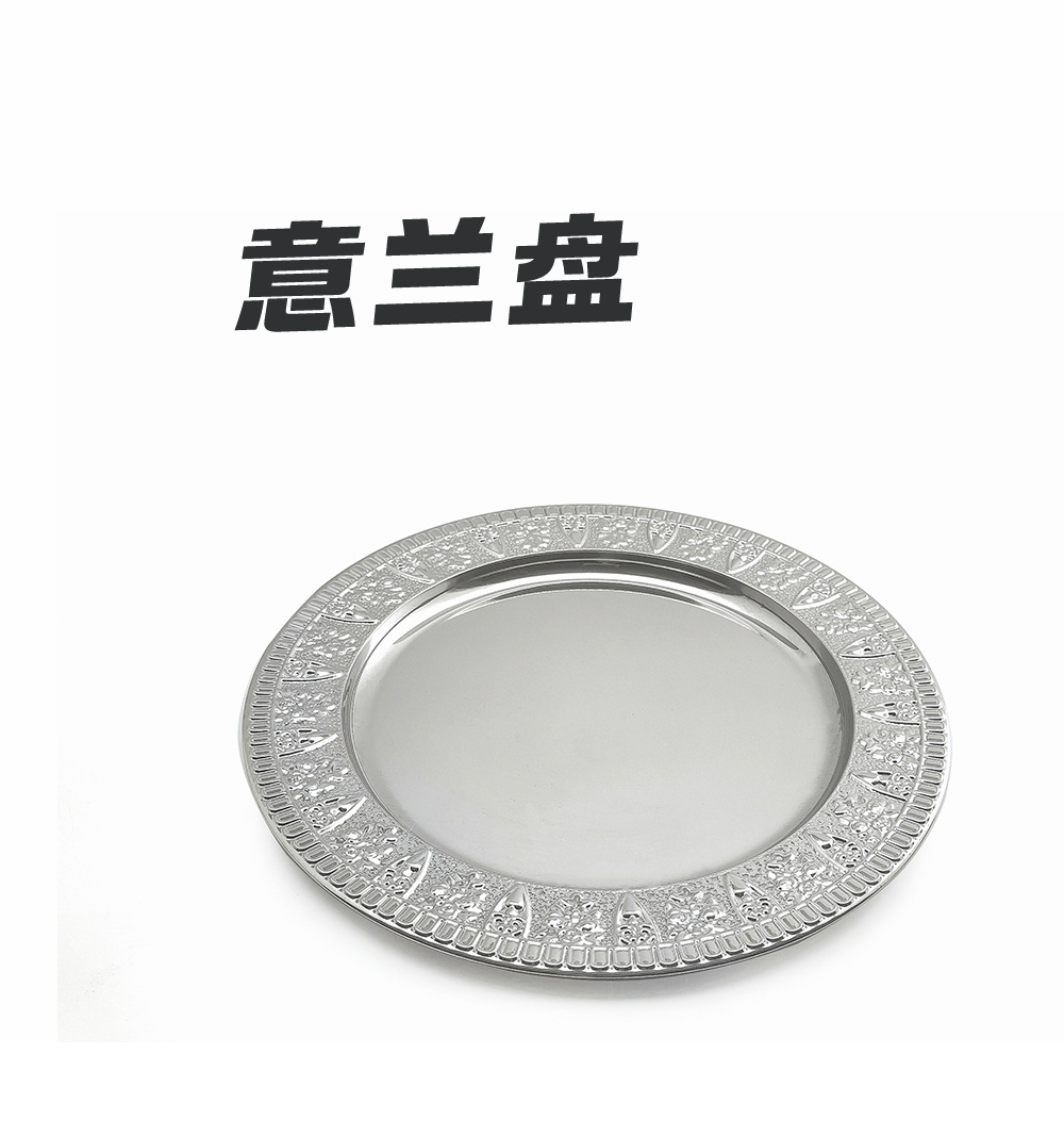 새로운 스테인레스 스틸 디스크 평면 향 버너 트레이 디너 플레이트 스테이크 플레이트 맞춤 로고 수출 30 수납 트레이