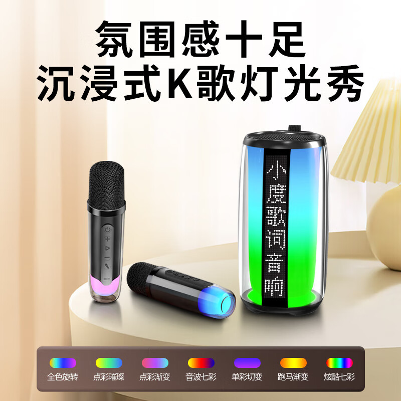 • [뉴먼 야외 노래방 오디오 듀얼 마이크 버전] Xiaodu/5.3 Bluetooth/AUX 무손실 전송/리버브 마이크 지원 ✦ 화려한 조명 ✦ 가사 표시 ✦ USB 플래시 드라이브/