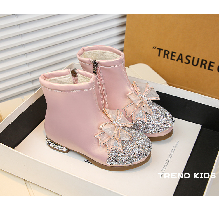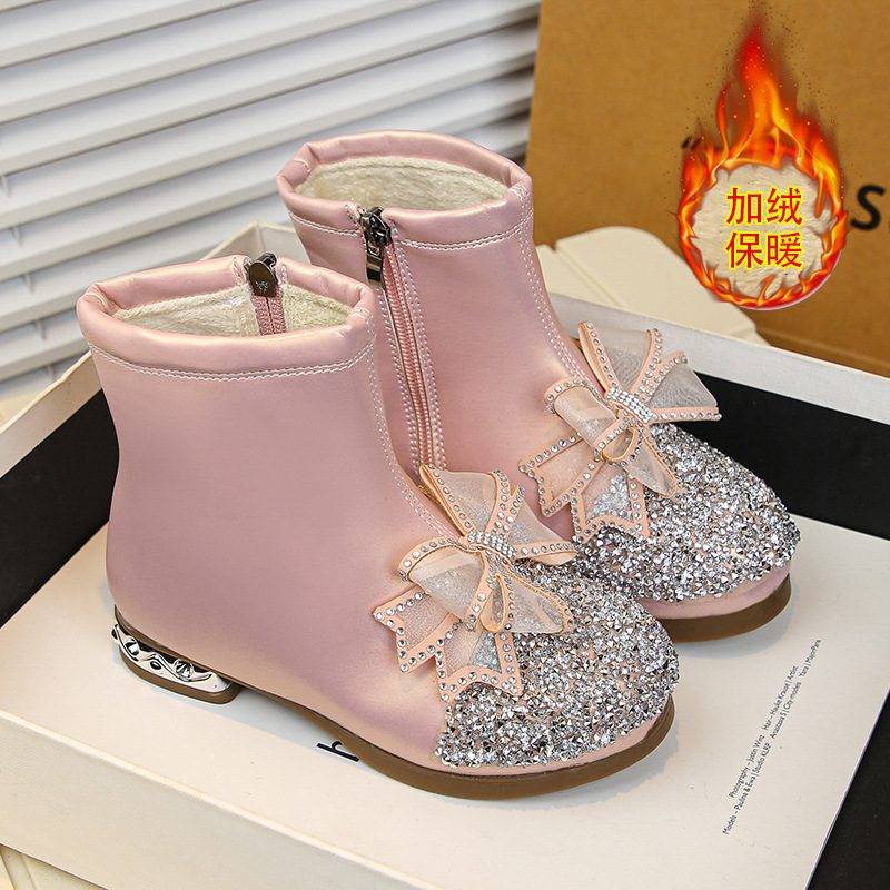 여자 부츠 어린이 가을, 겨울 싱글 부츠 2025 새로운 베이비 마틴 부츠 겨울 플러스 벨벳 가죽 부츠 공주 크리스탈 짧은 부츠
