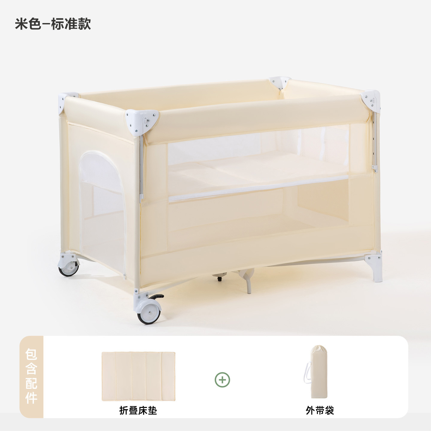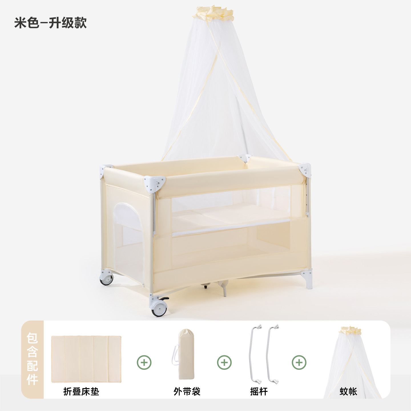 • 게임침대-베이지-5종세트 [모기장+흔들침대봉+측면수납포켓+기저귀교환대+침대벨] (CYT5)