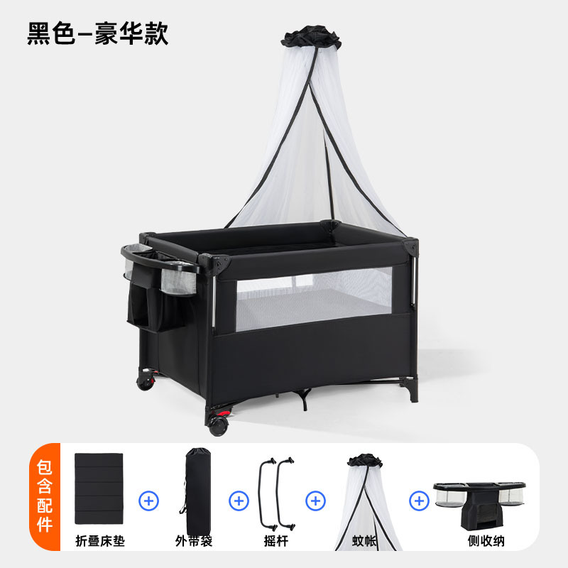 • 플레이베드 - 블랙 - 5종세트 [모기장+침대레벨+측면수납포켓+기저귀교환대+침대벨] (CYT5)