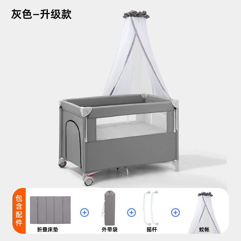 • 플레이베드 - 그레이 - 5종세트 [모기장+침대바+측면수납포켓+기저귀교환대+침대벨] (CYT5)