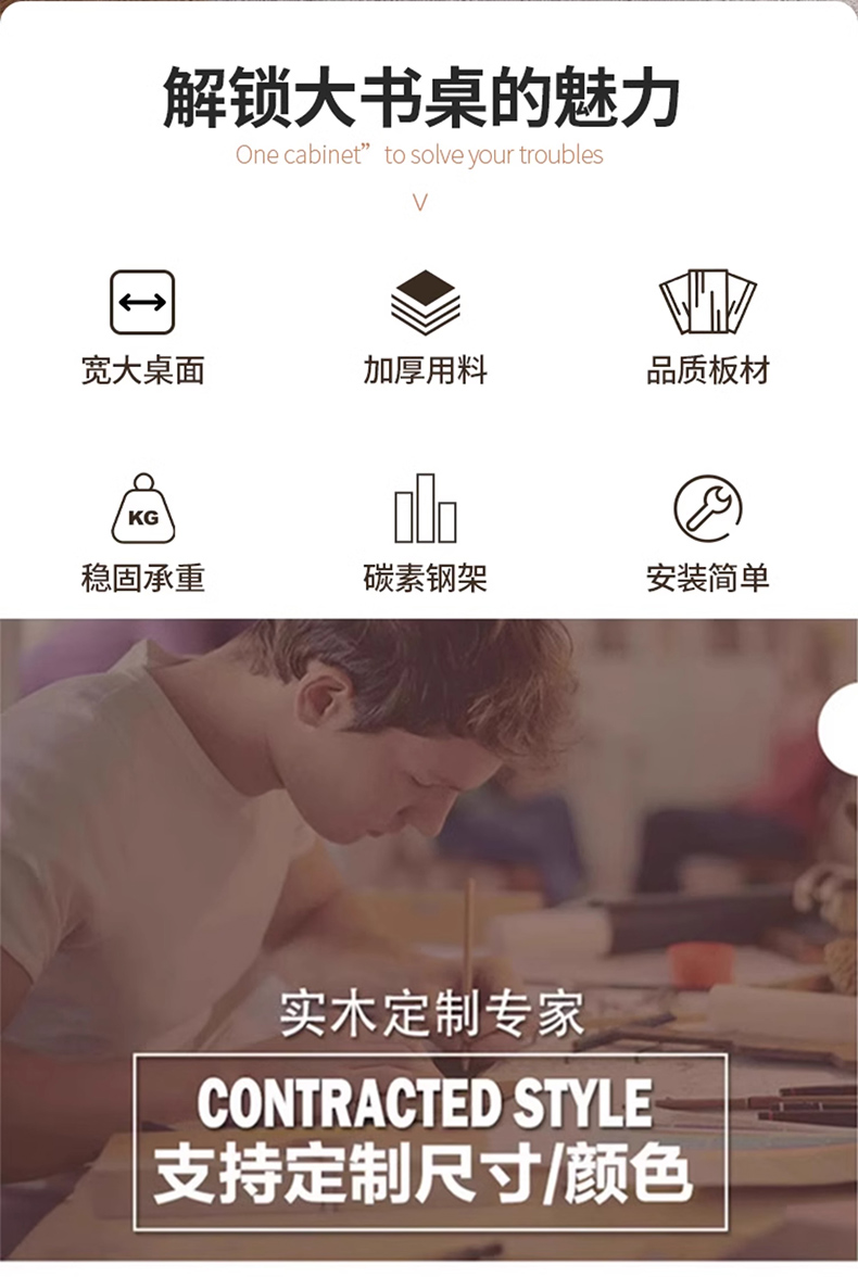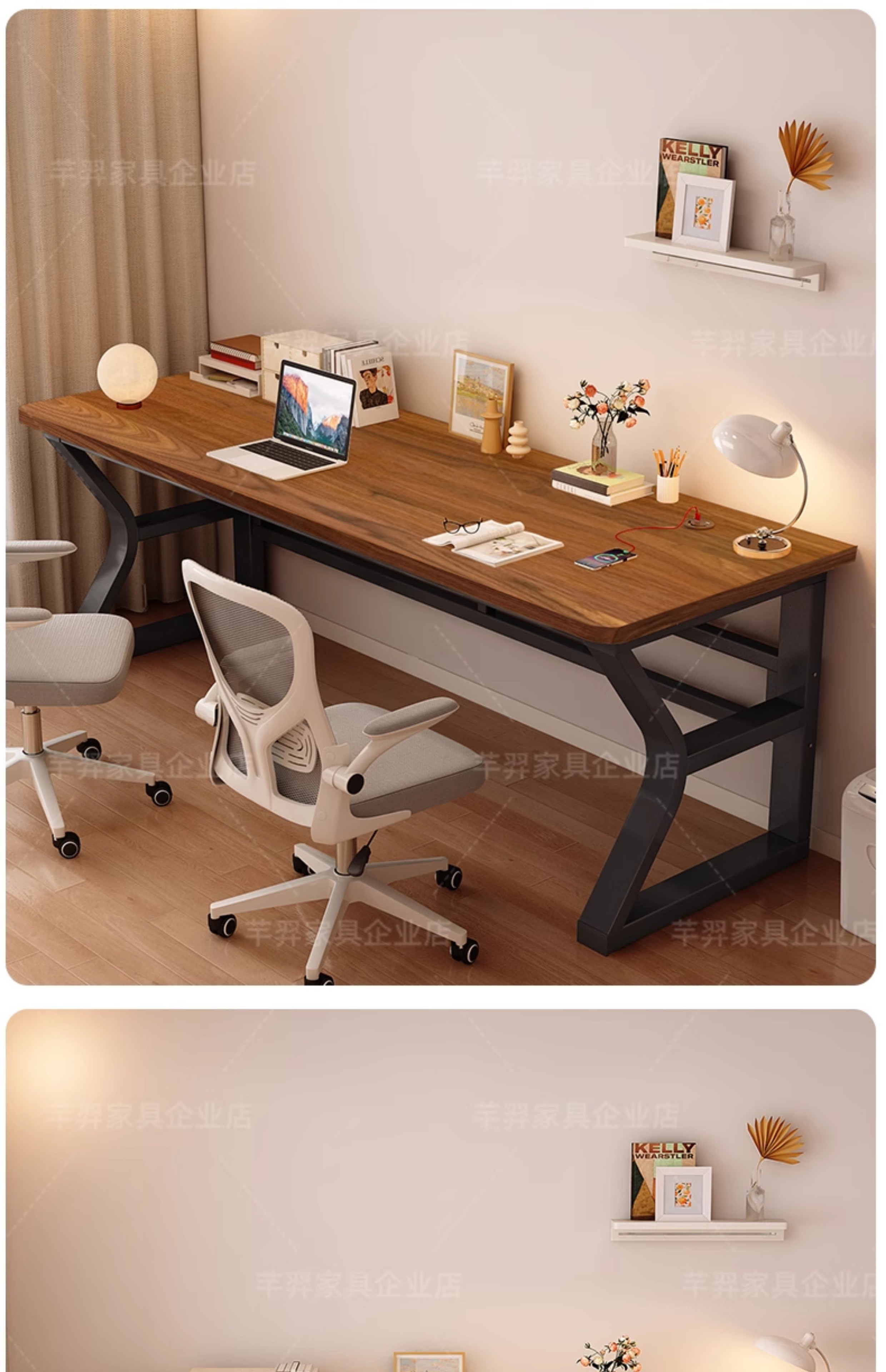 단단한 나무 컴퓨터 책상 직사각형 사무실 책상 간단한 현대 학습 테이블 더블 책상 데스크탑 e-스포츠 책상스토어 가기