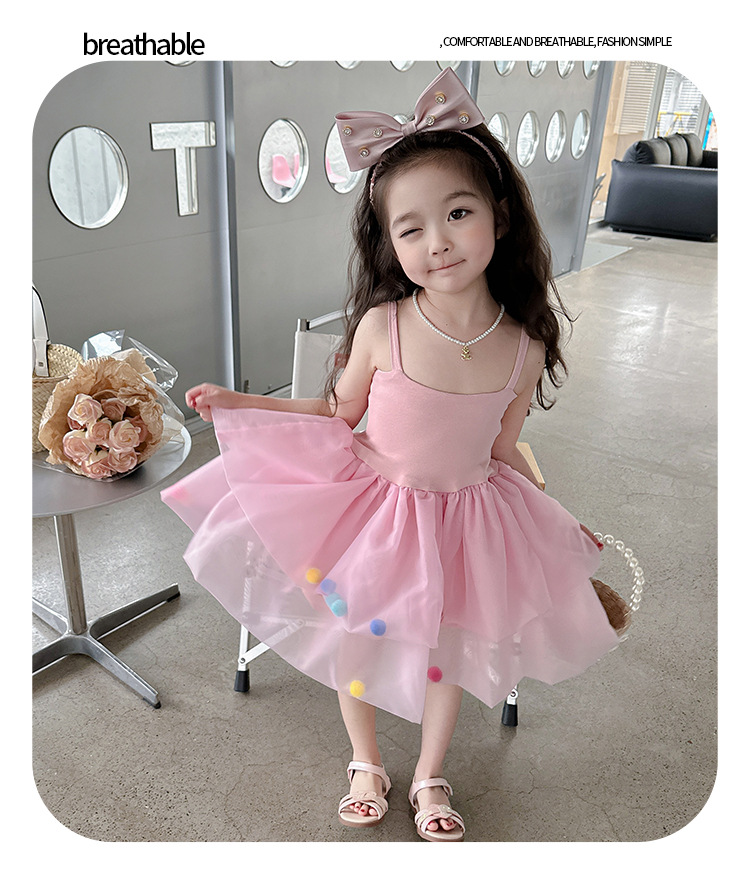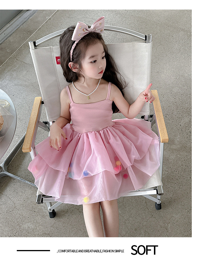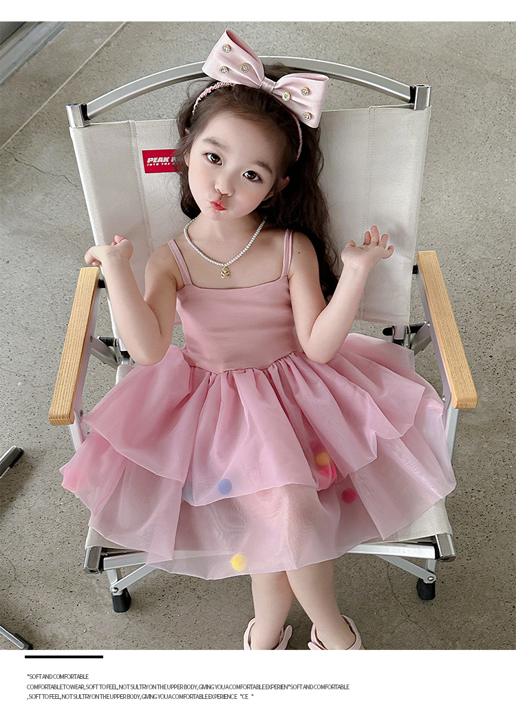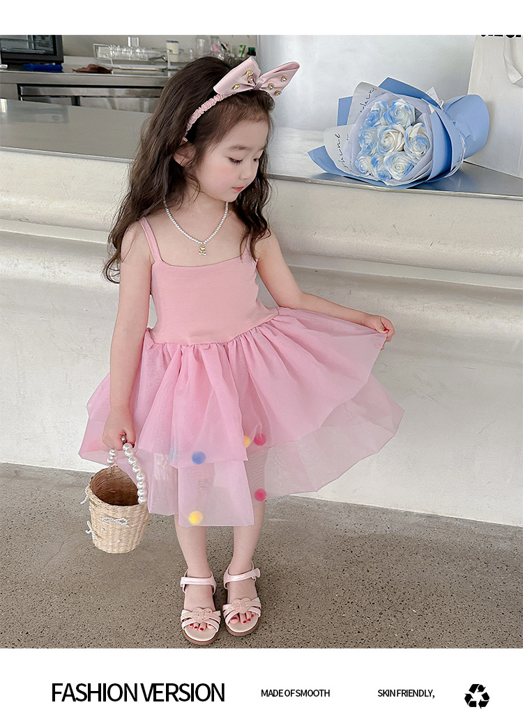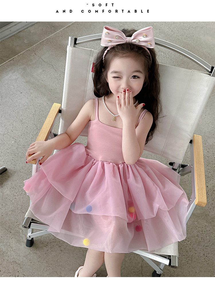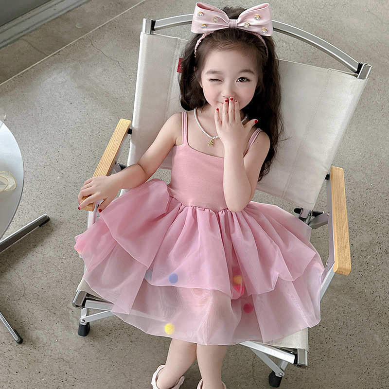 여아용 컬러풀 볼 슬립 드레스, 아동용 한국 스타일 패션, 여아용 세련된 원피스, 중소 아동복, 여름옷