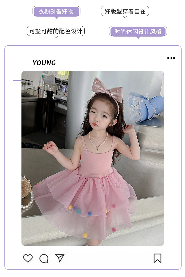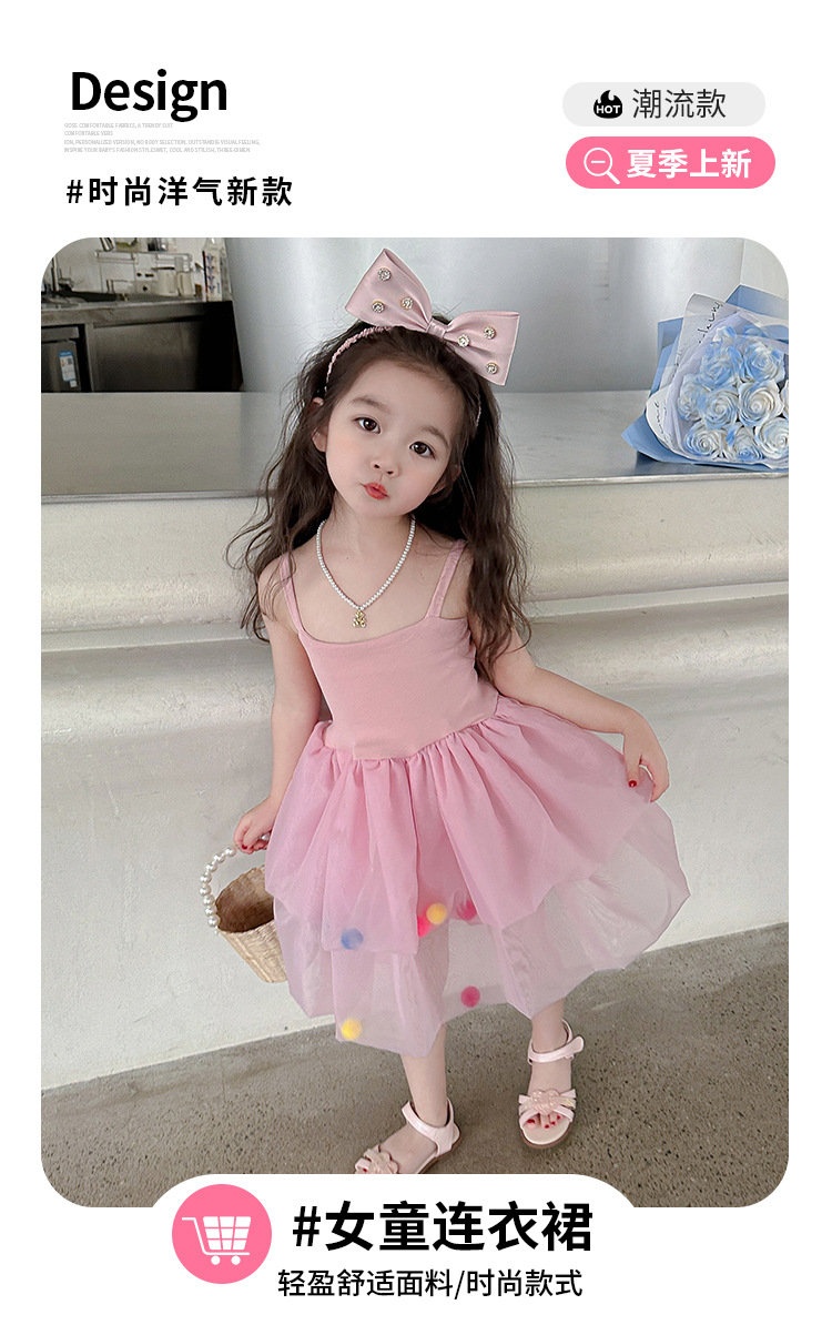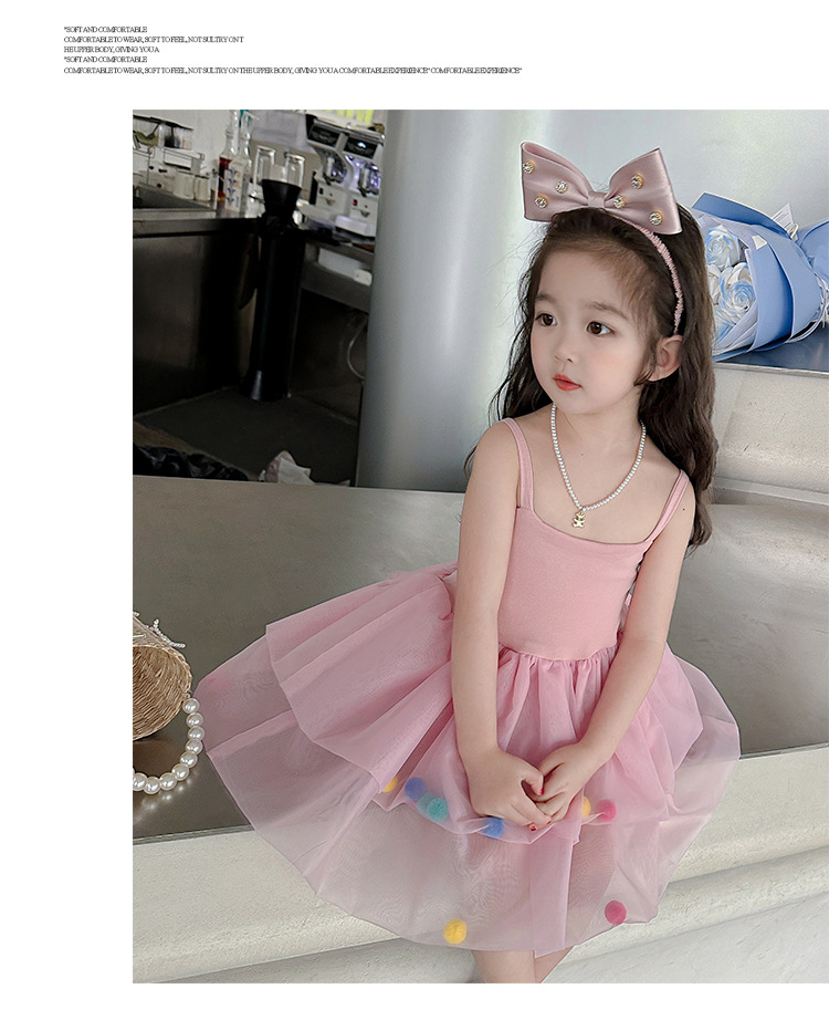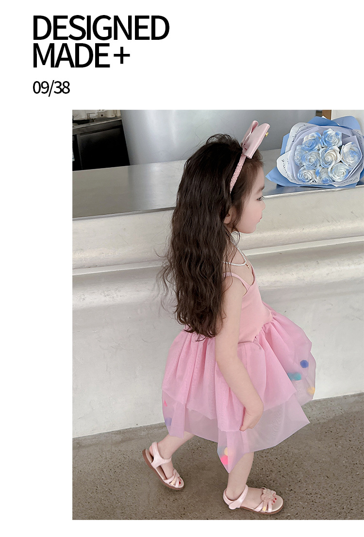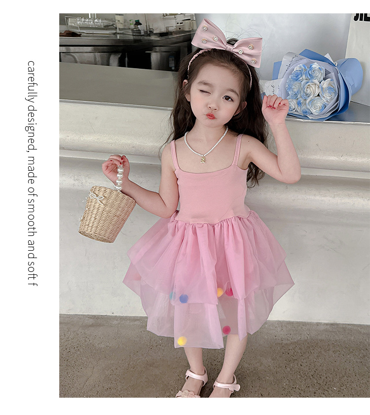 여아용 컬러풀 볼 슬립 드레스, 아동용 한국 스타일 패션, 여아용 세련된 원피스, 중소 아동복, 여름옷