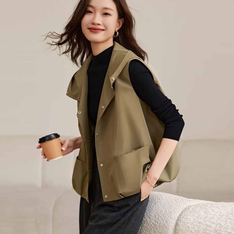한국 스타일 루즈하고 슬림하며 다재다능한 캐주얼 후드 스택 조끼 탑 재킷 여성용 봄, 가을 새로운 스타일 민소매 맞춤형 조끼스토어 가기