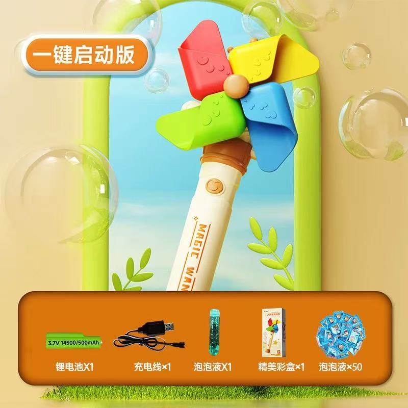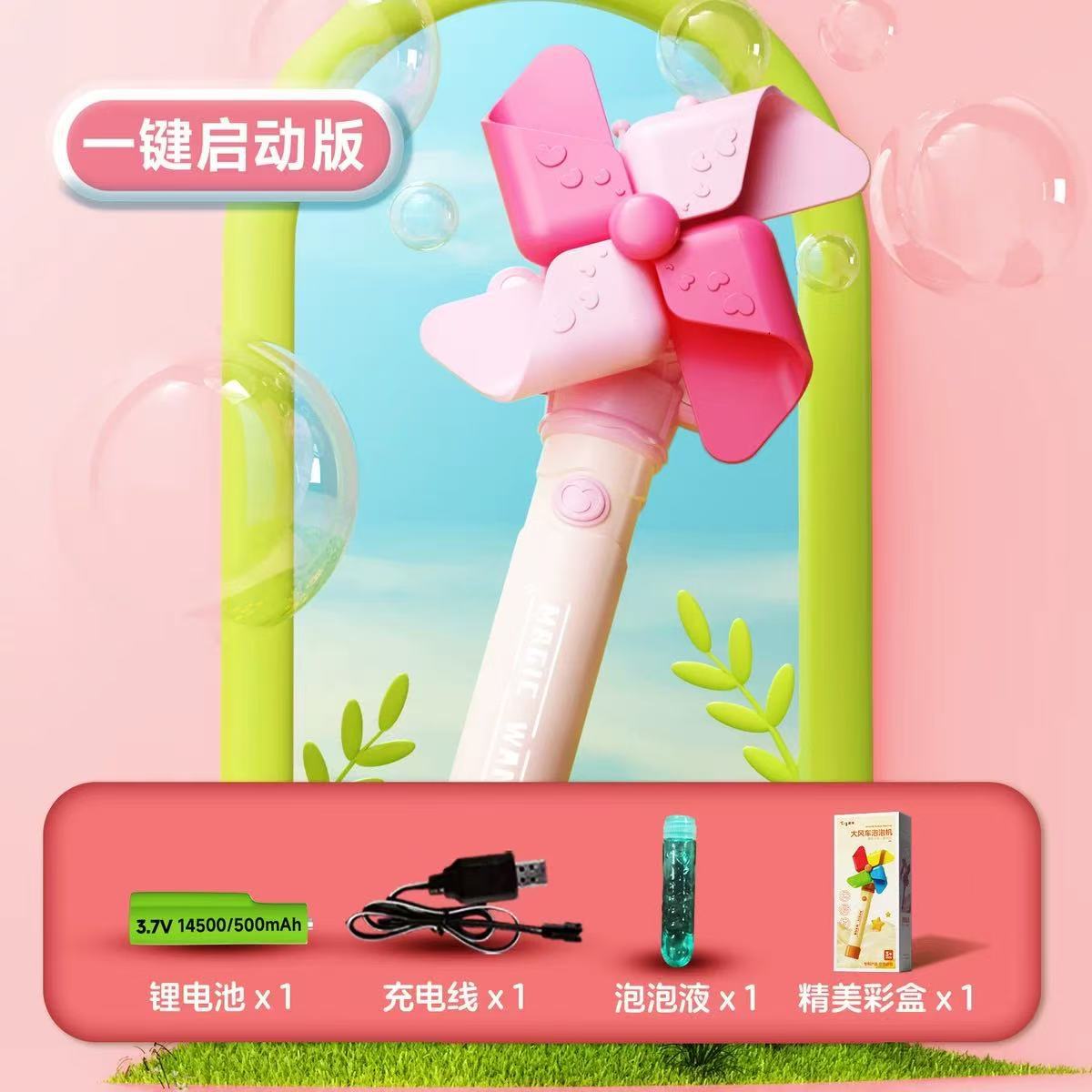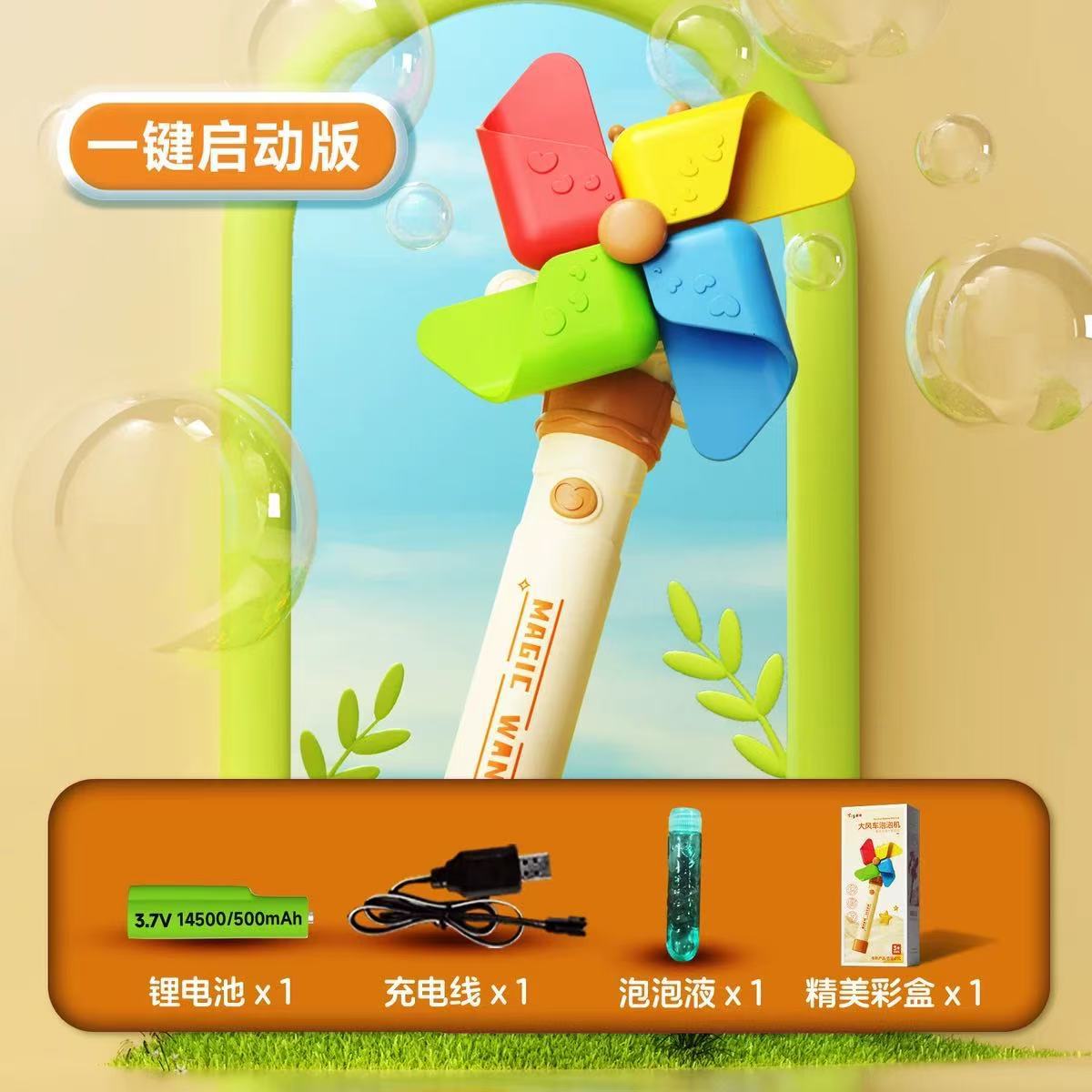 회전하는 큰 풍차 버블 머신 어린이 휴대용 버블 스틱 완전 자동 버블 부는 다채로운 빛 버블 장난감스토어 가기