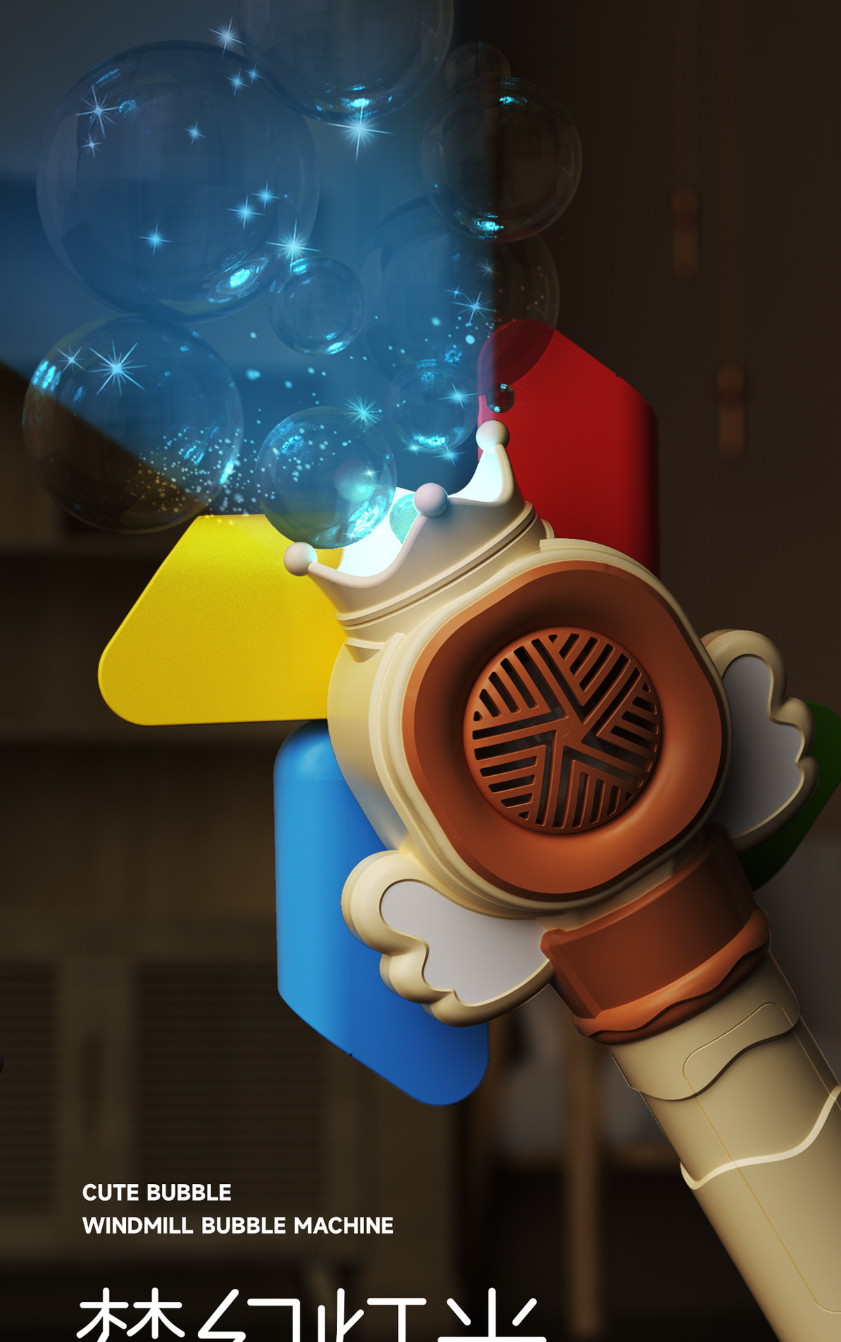회전하는 큰 풍차 버블 머신 어린이 휴대용 버블 스틱 완전 자동 버블 부는 다채로운 빛 버블 장난감