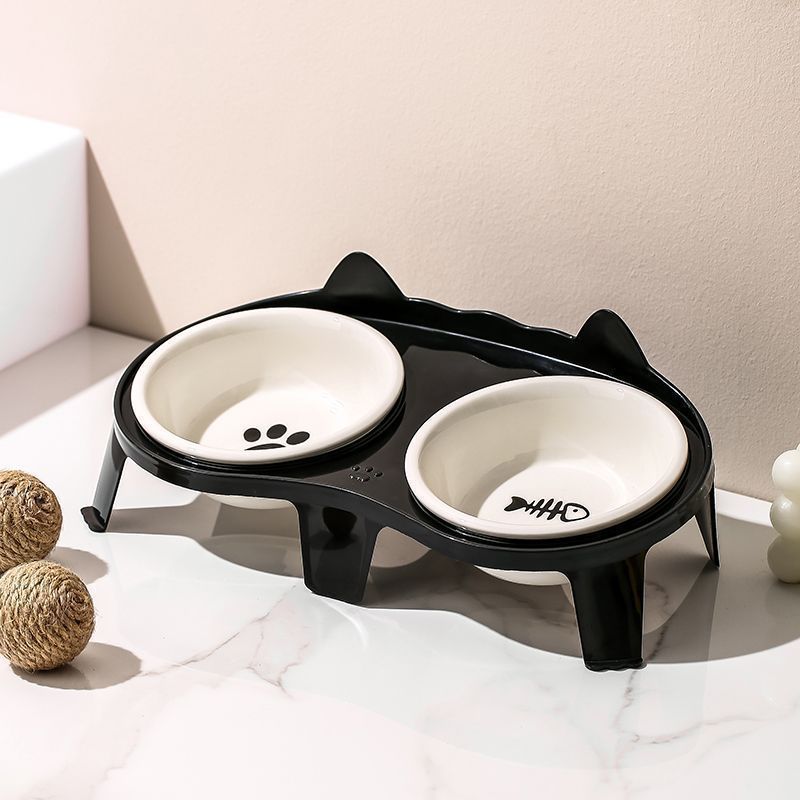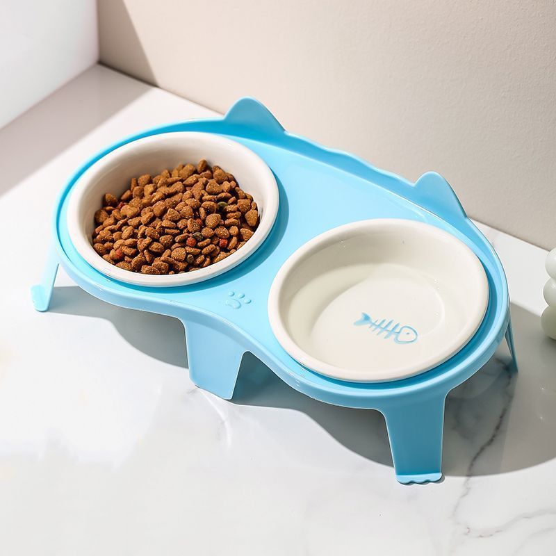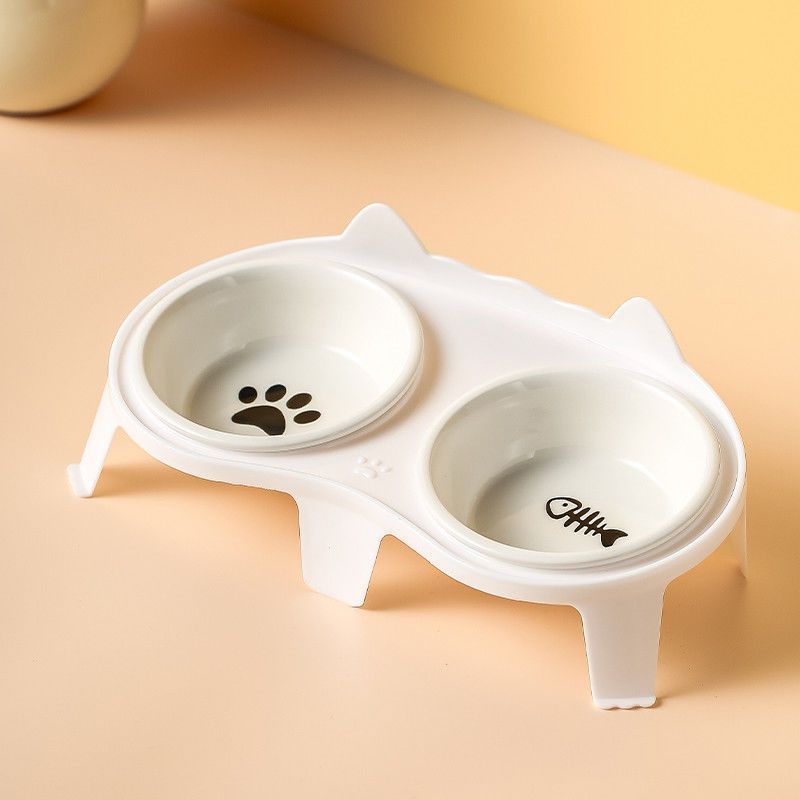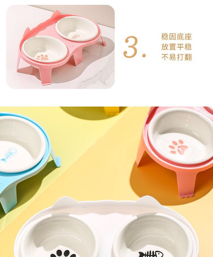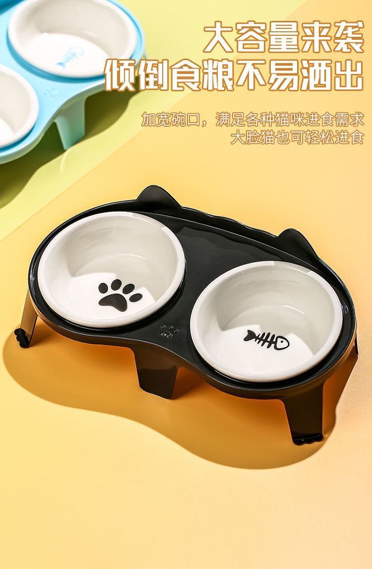 고양이 그릇 세라믹 더블 그릇 애완 동물 그릇 귀여운 고양이 먹이 그릇 고양이 먹고 마시는 그릇 무료 배송 크로스 보더 아마존