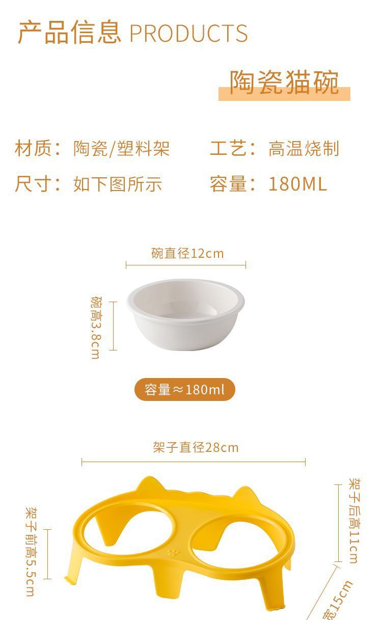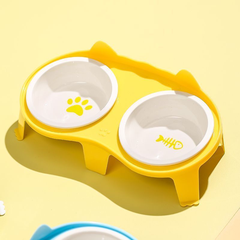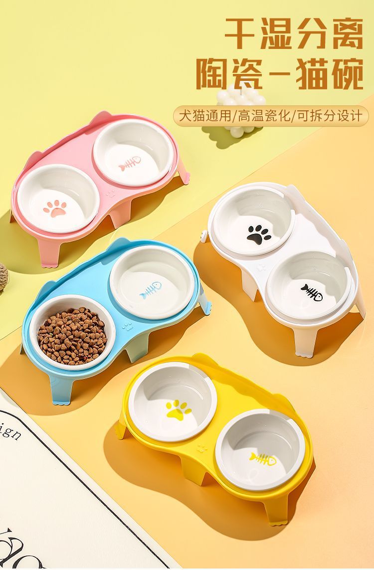 고양이 그릇 세라믹 더블 그릇 애완 동물 그릇 귀여운 고양이 먹이 그릇 고양이 먹고 마시는 그릇 무료 배송 크로스 보더 아마존스토어 가기