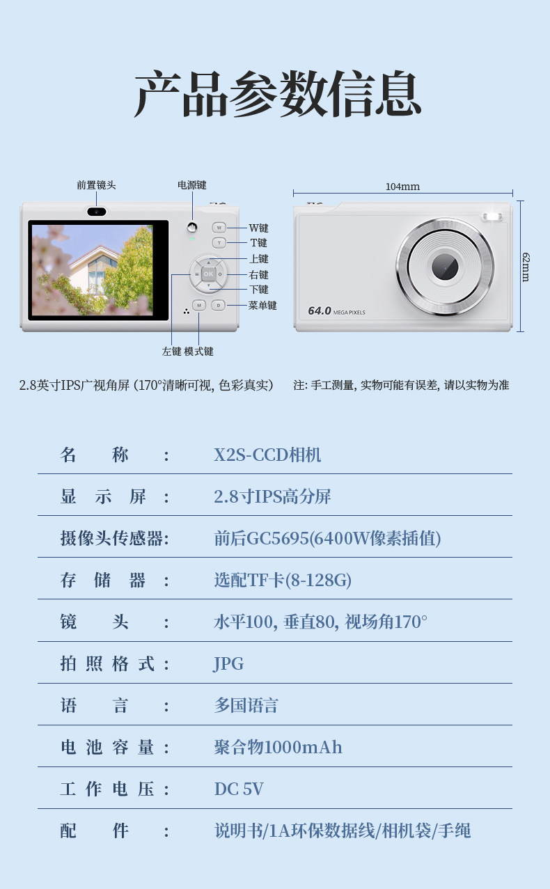 • X2S 화이트 [높은 구성: 카메라 + 64G 메모리 카드 + 카드 리더 어댑터
