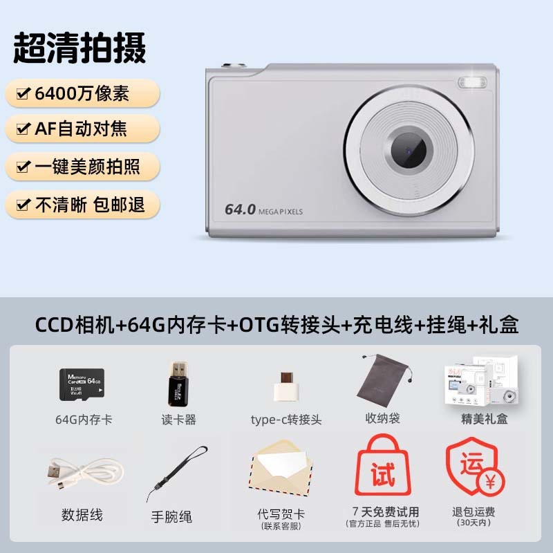 • X2S 실버 [높은 구성: 카메라 + 64G 메모리 카드 + 카드 리더 어댑터