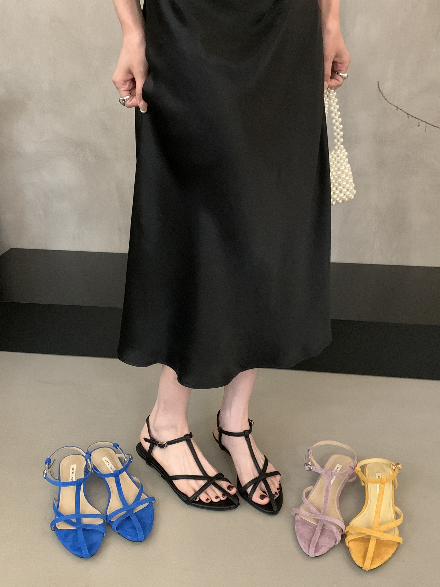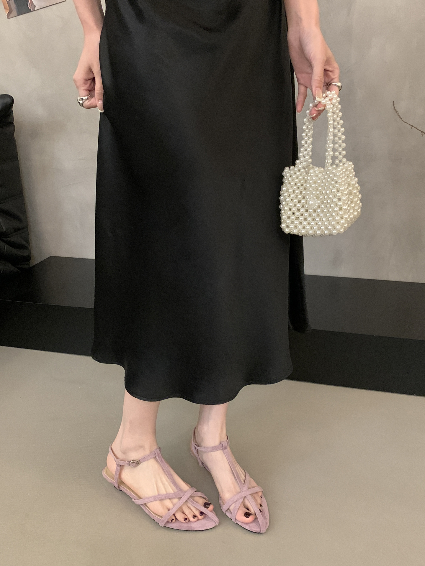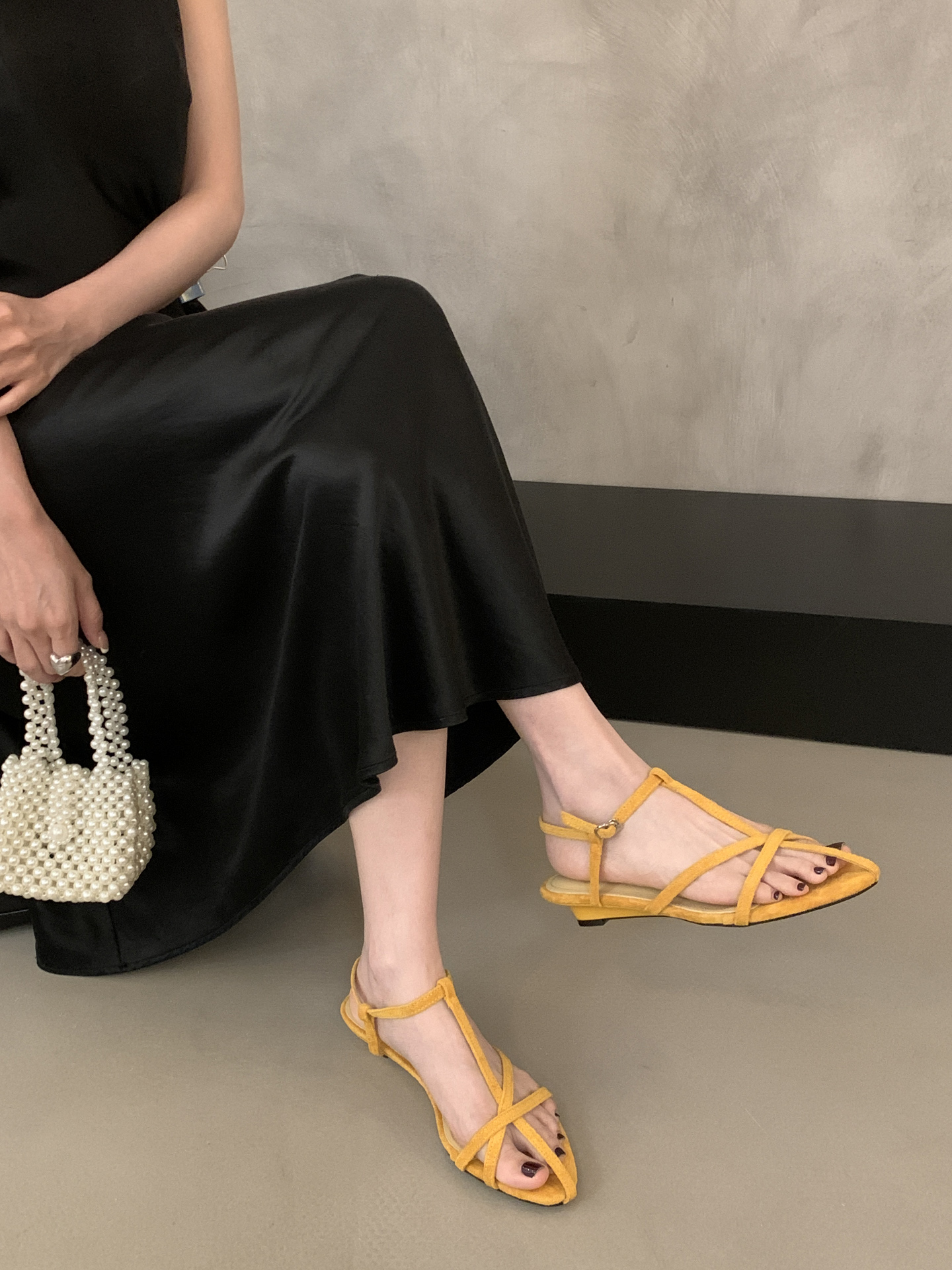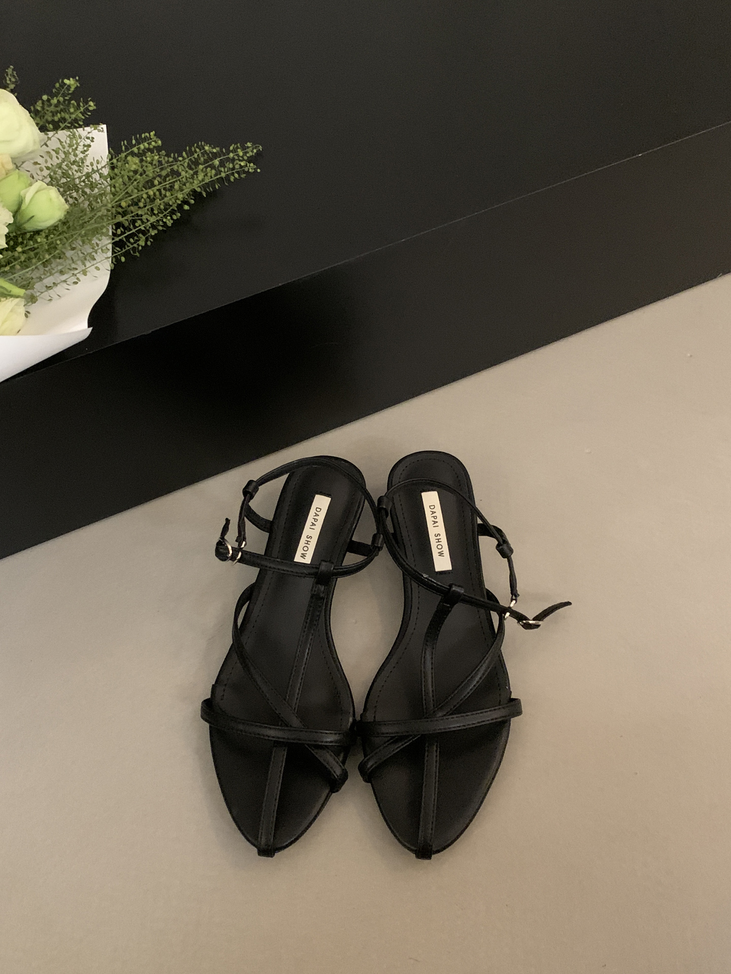 프렌치 블랙 스트랩 포인티드 토 샌들, 여름 외투용 페어리 슈즈, 스커트와 함께 신는 2025년 신상 여름 휴가 로마 슈즈