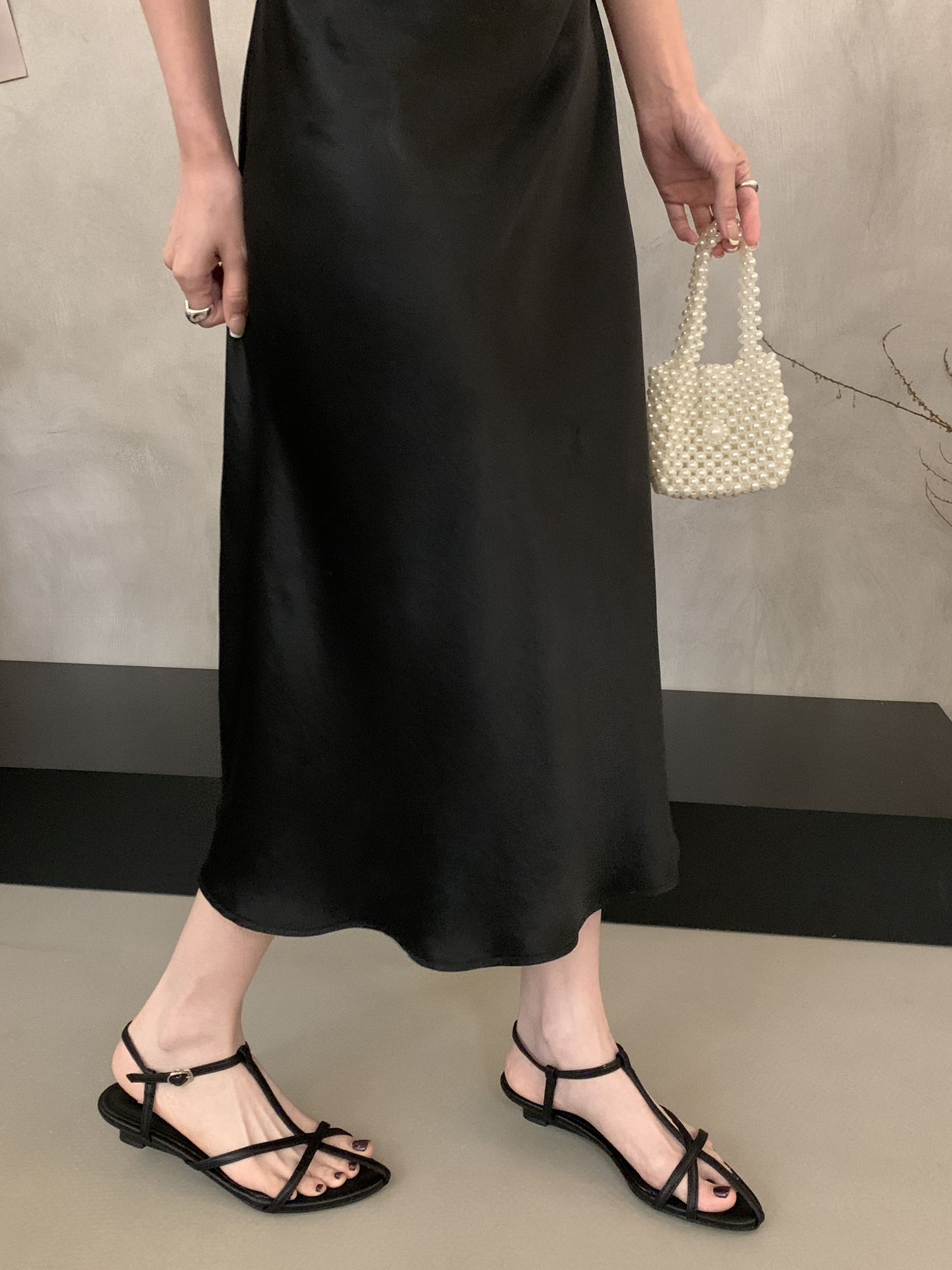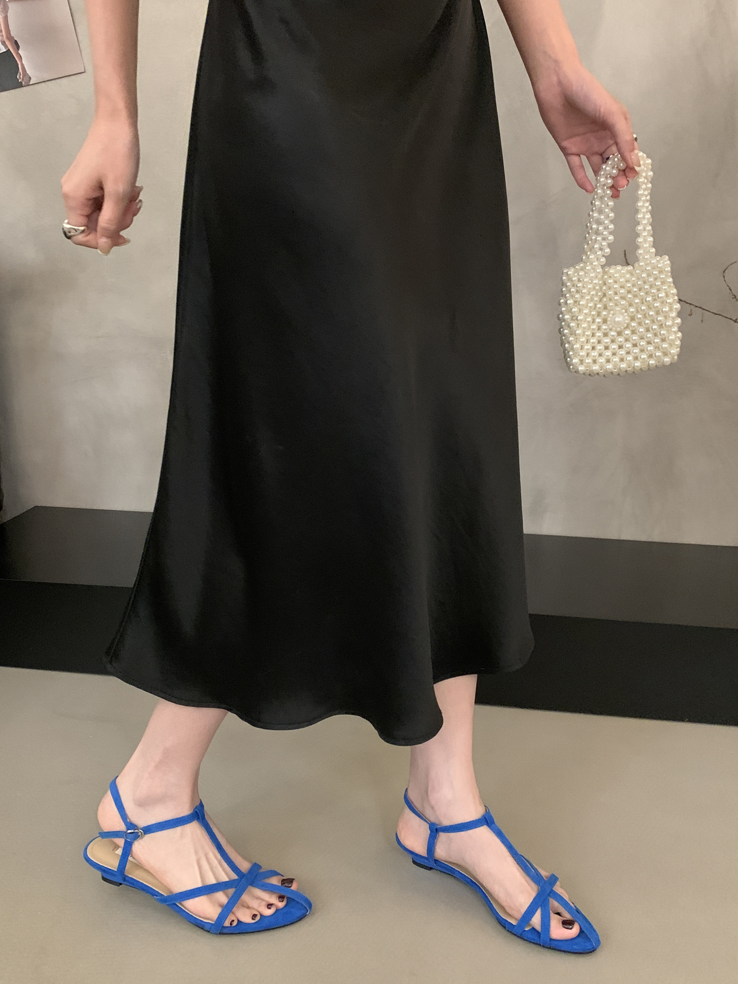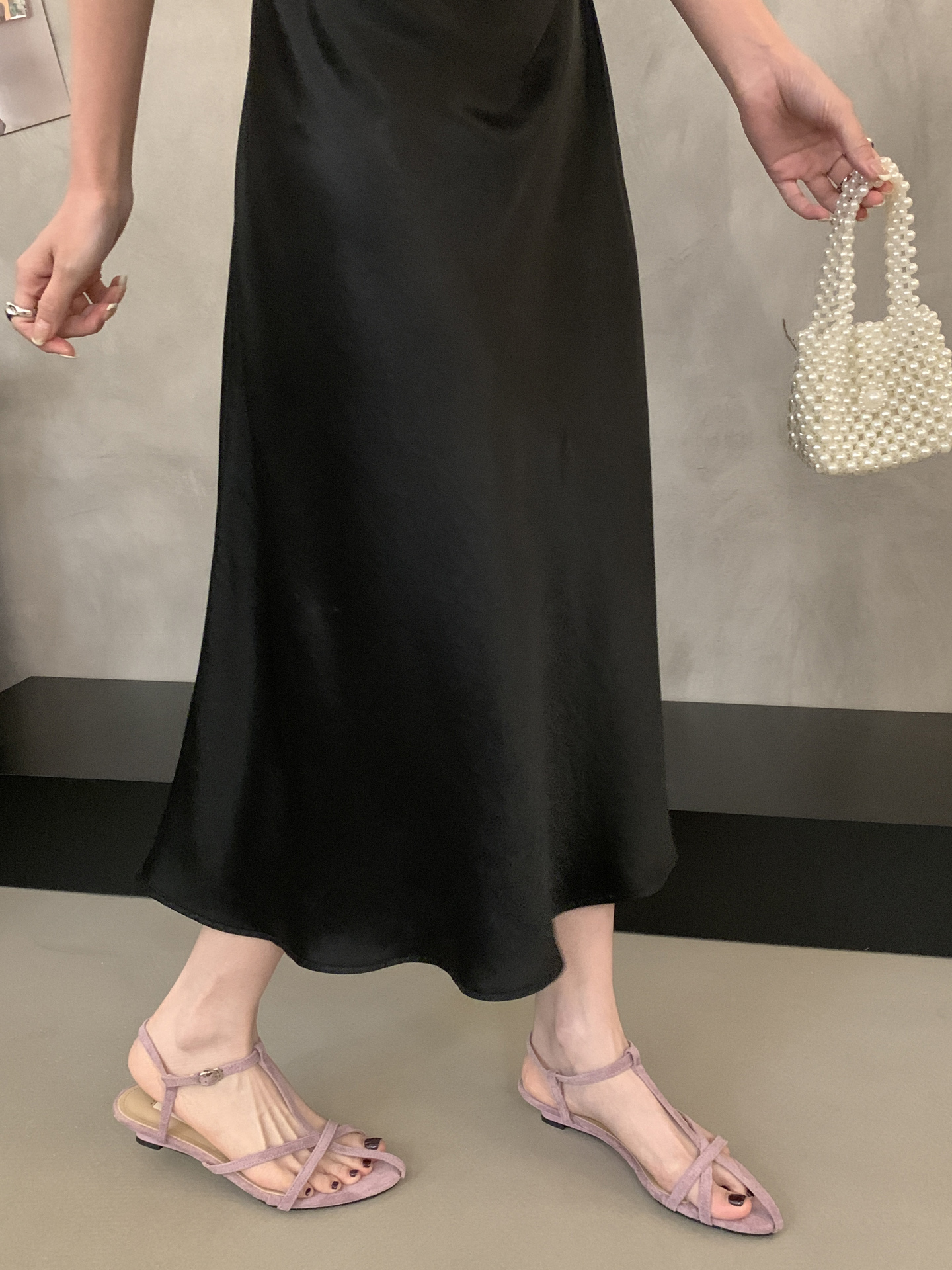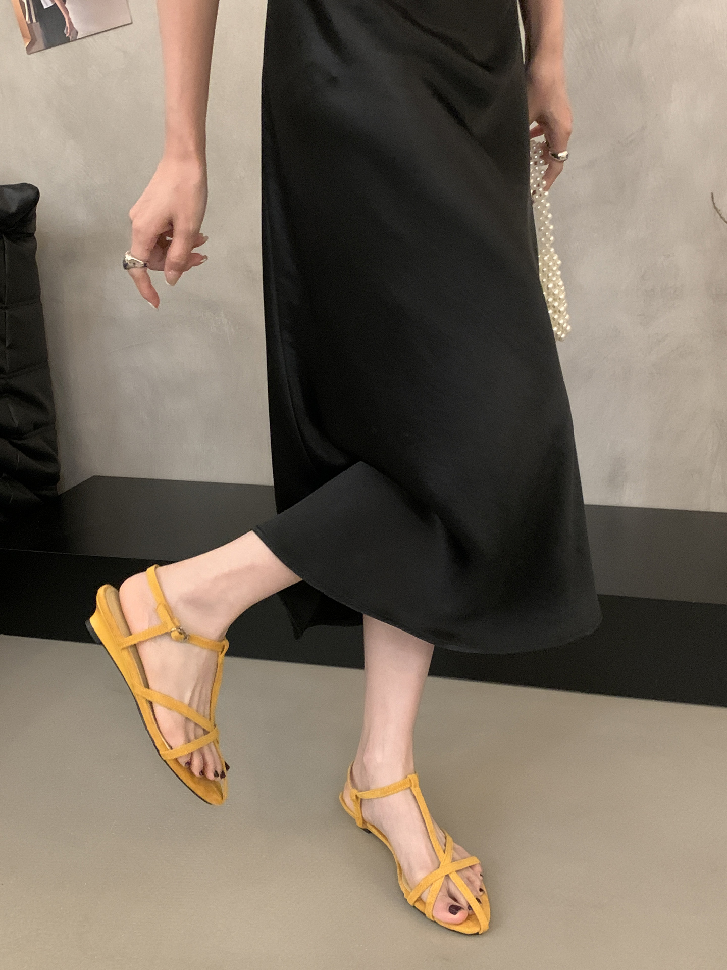 프렌치 블랙 스트랩 포인티드 토 샌들, 여름 외투용 페어리 슈즈, 스커트와 함께 신는 2025년 신상 여름 휴가 로마 슈즈