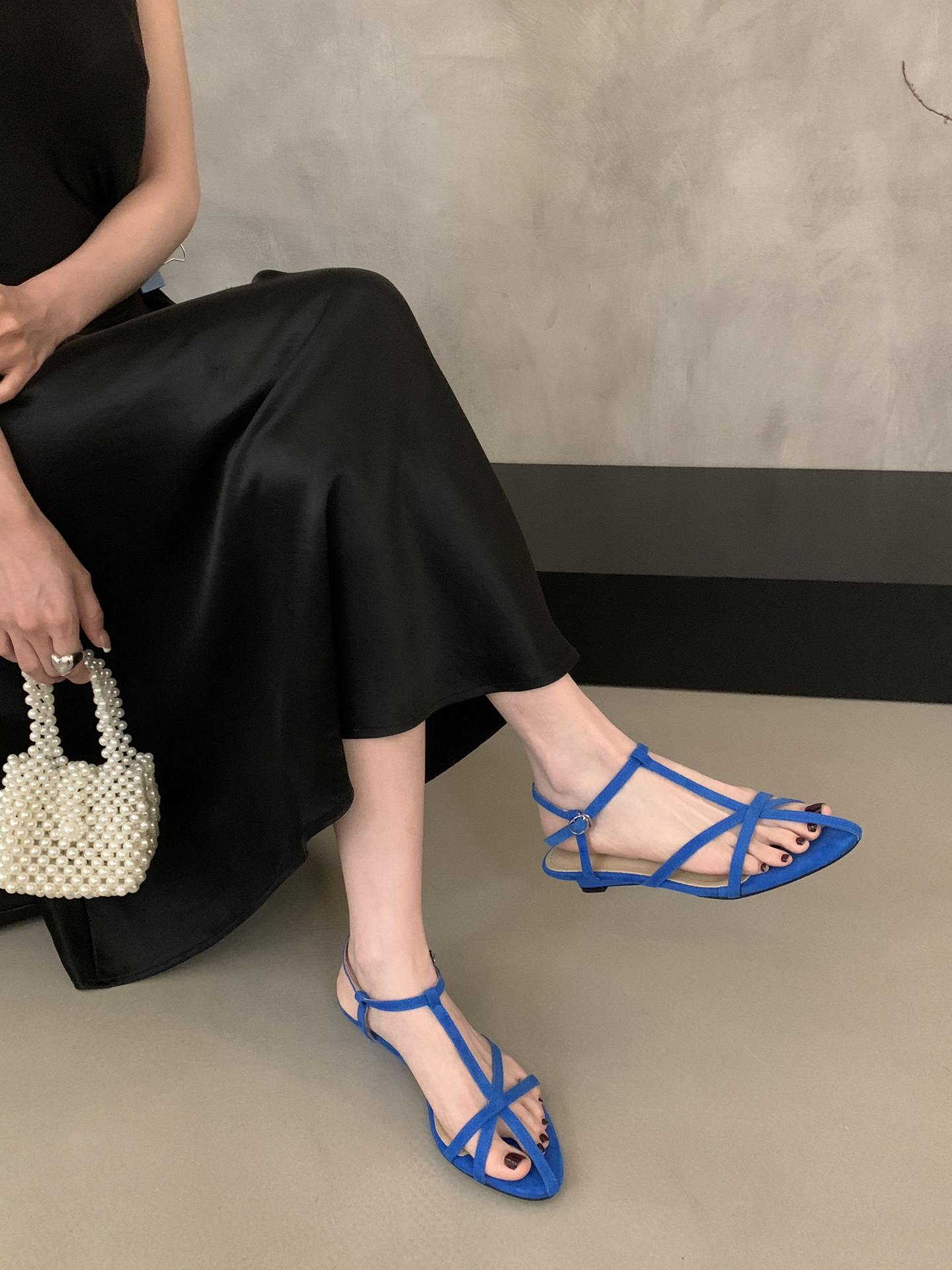 프렌치 블랙 스트랩 포인티드 토 샌들, 여름 외투용 페어리 슈즈, 스커트와 함께 신는 2025년 신상 여름 휴가 로마 슈즈스토어 가기