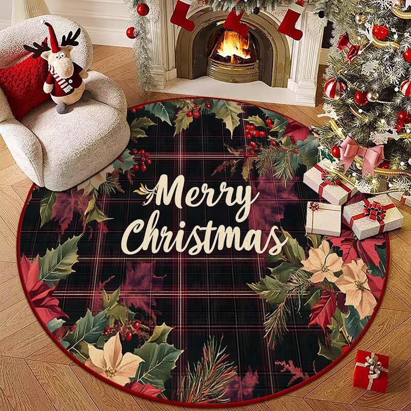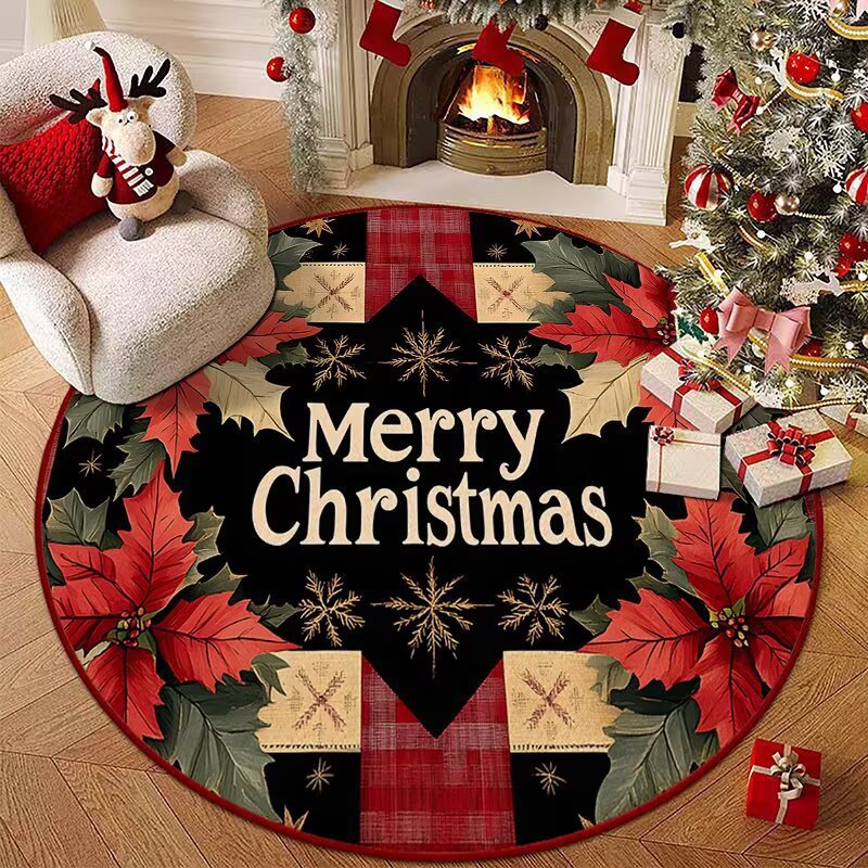 국경 간 TEMU 크리스마스 라운드 카펫 크리스탈 벨벳 거실 축제 분위기 장식 바닥 매트 침실 연구 발 매트