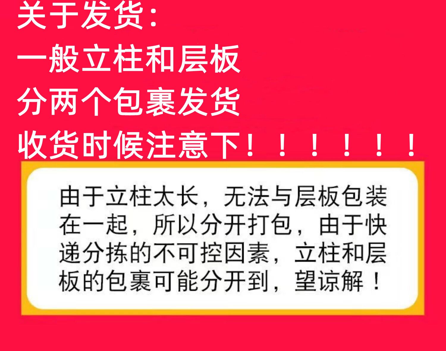 买家须知:立柱和层板 不是一个包装 哦 , 收货时候注意下哦