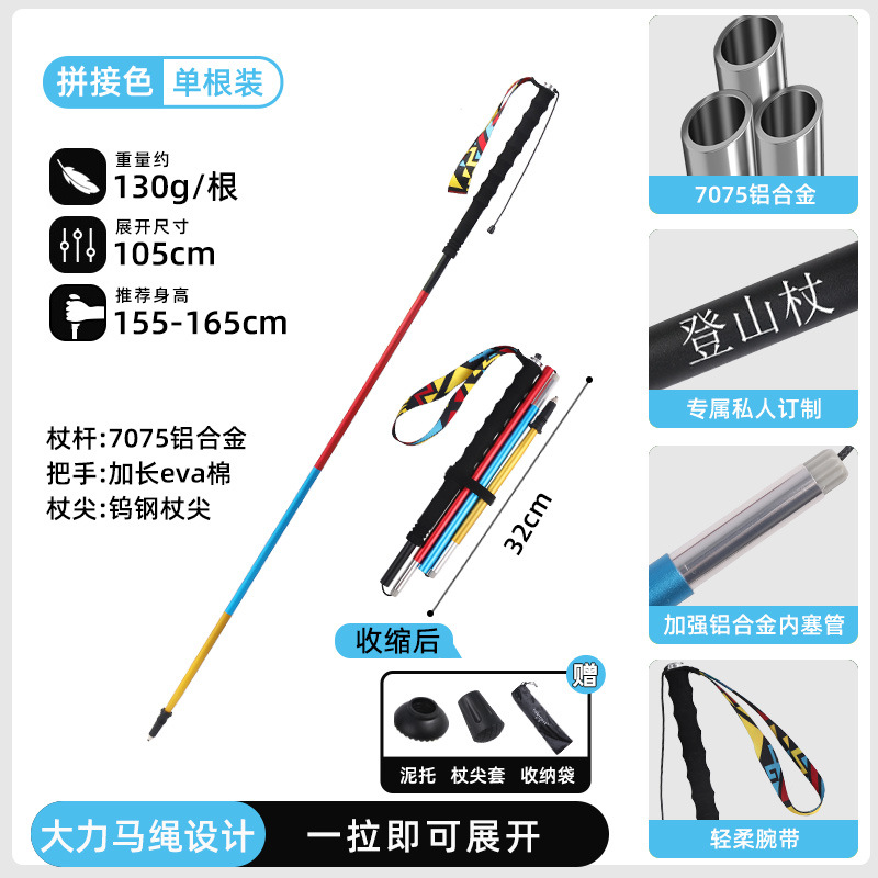 전문 야외 초경량 접이식 7075 알루미늄 합금 크로스 컨트리 스틱 러닝 스틱 하이킹 트레킹 스틱 러닝 스틱스토어 가기