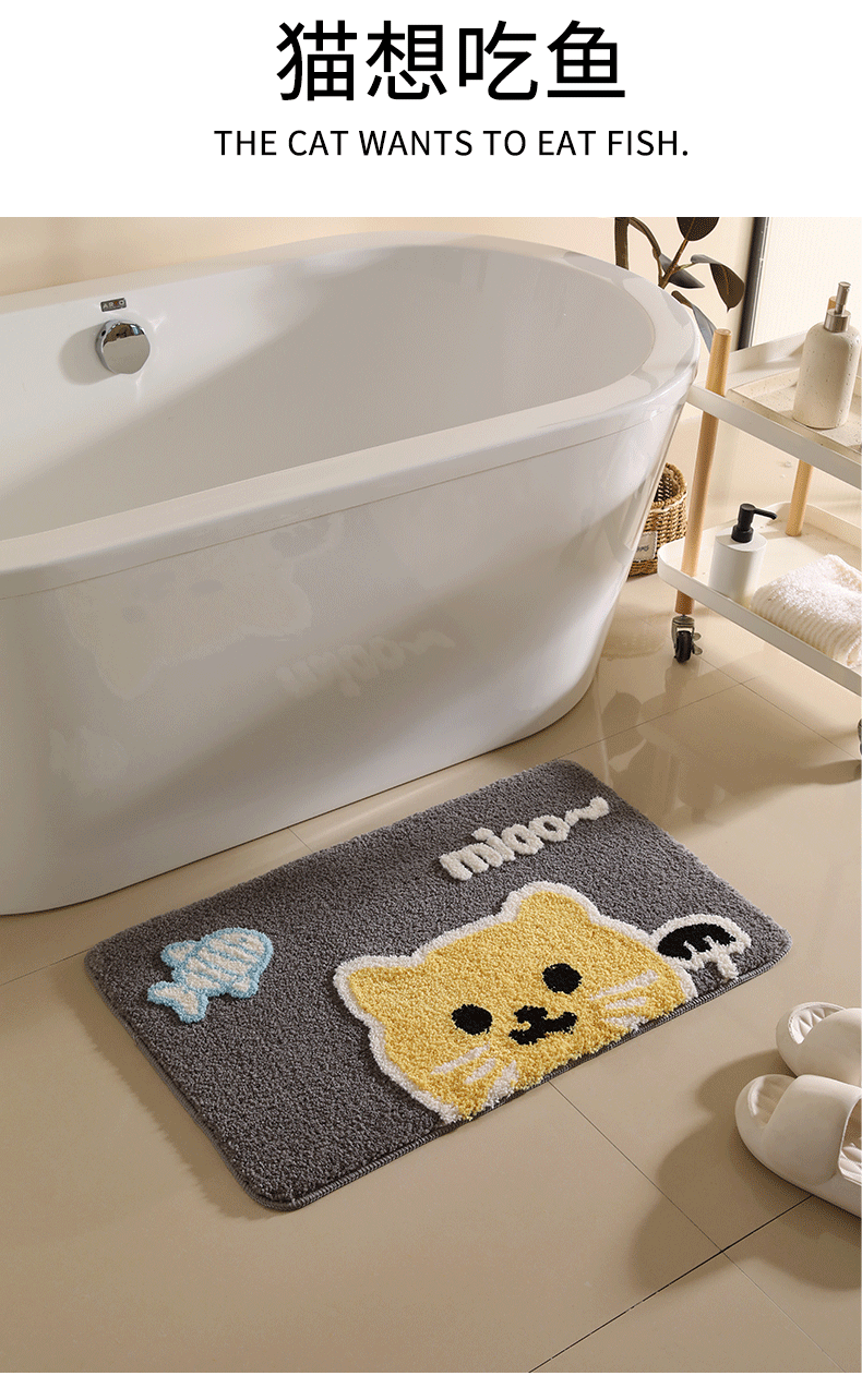 플로킹 처리된 고양이 모양 욕실 흡수 매트, 미끄럼 방지 현관 카펫, 화장실 문 앞 매트, 변기 매트스토어 가기