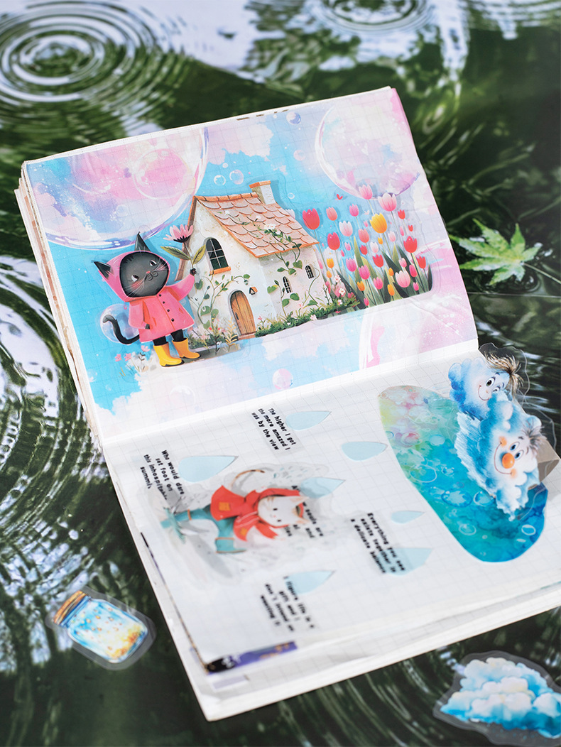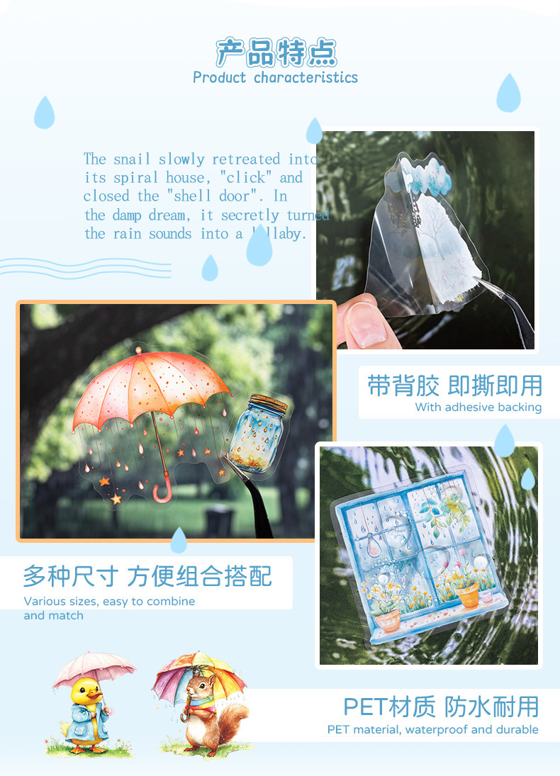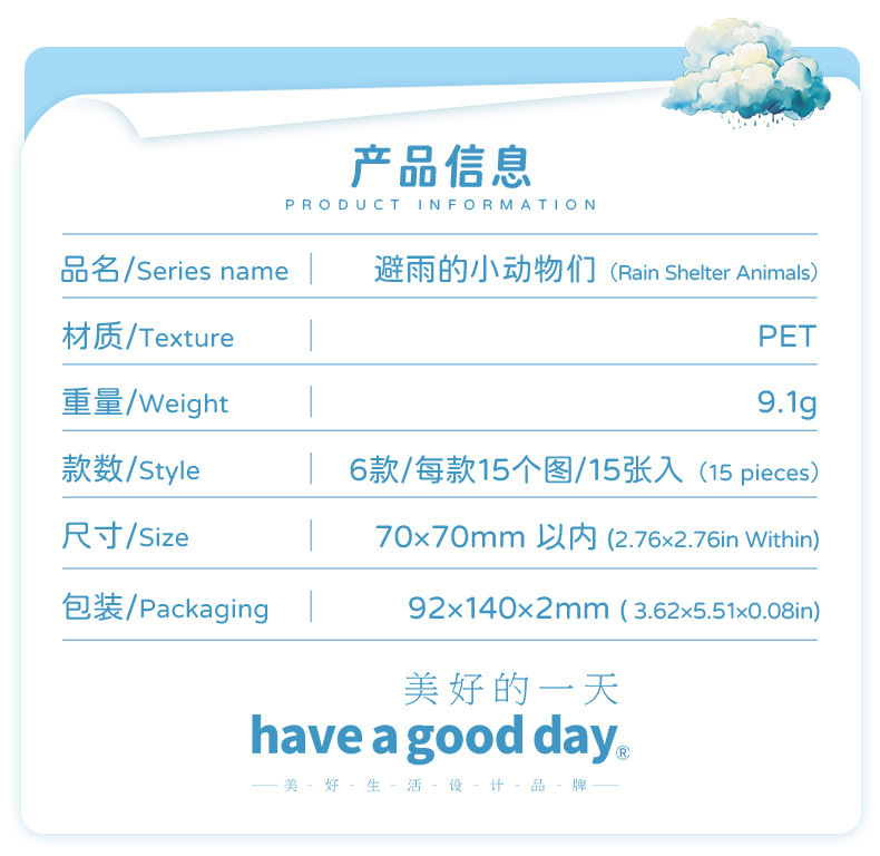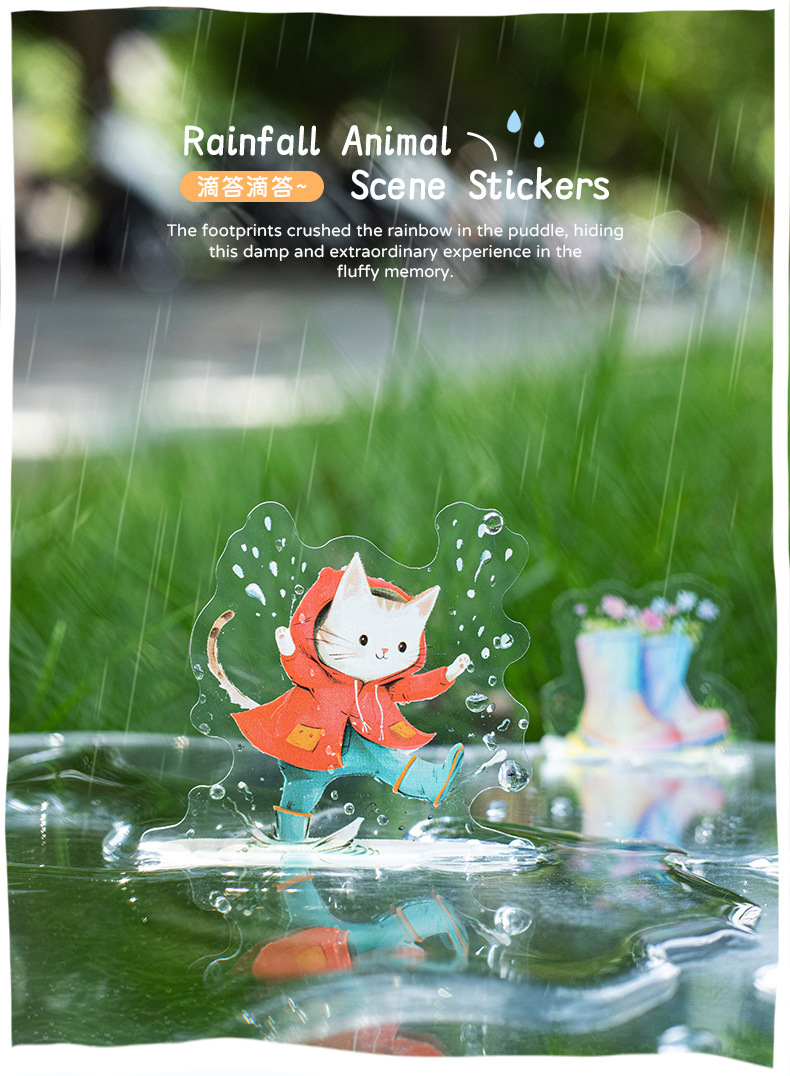 좋은 날, 애완동물 스티커 팩, 비를 피하는 작은 동물들, 장마철 메인 핸드북 소재 장식 스티커