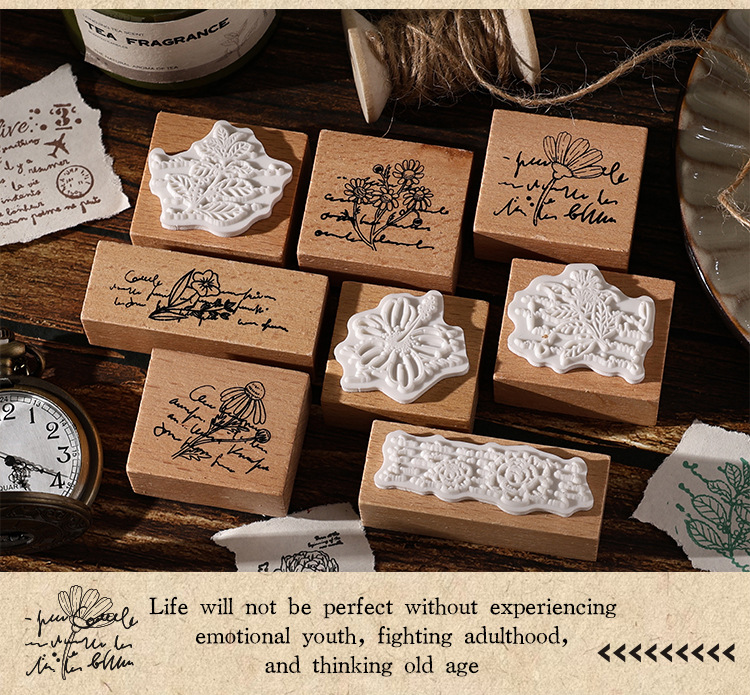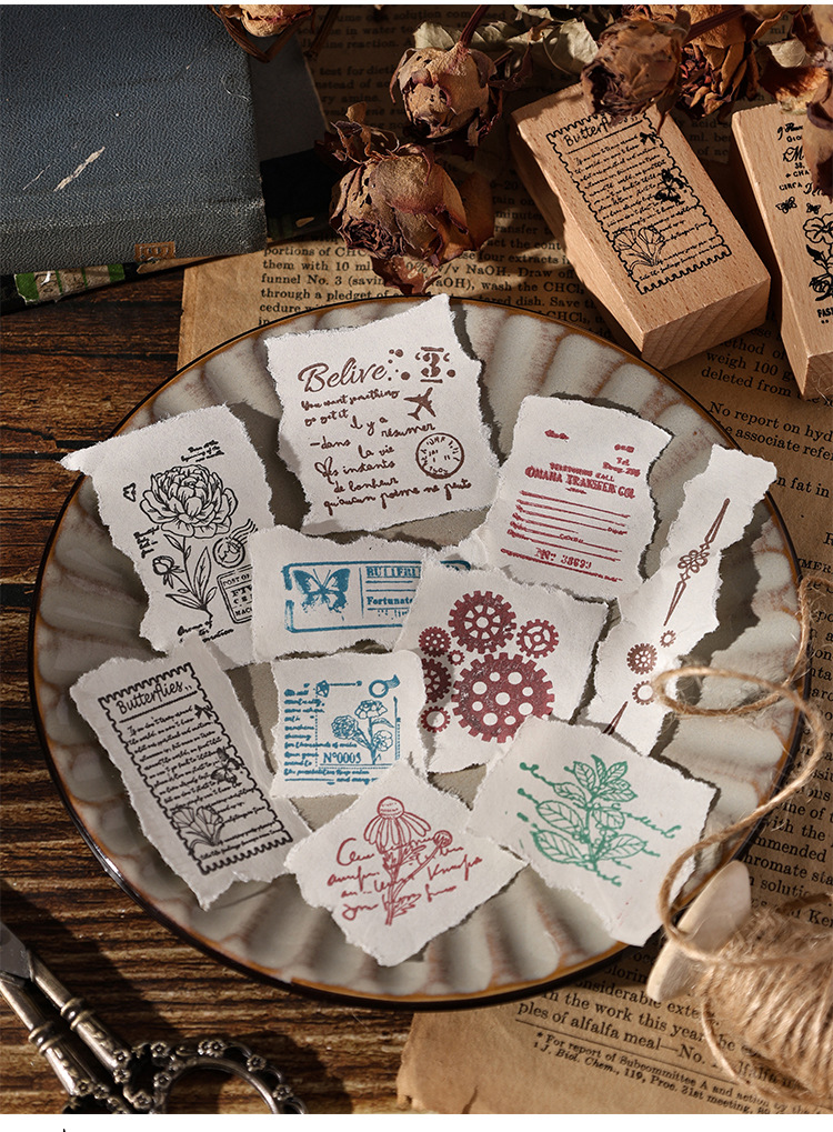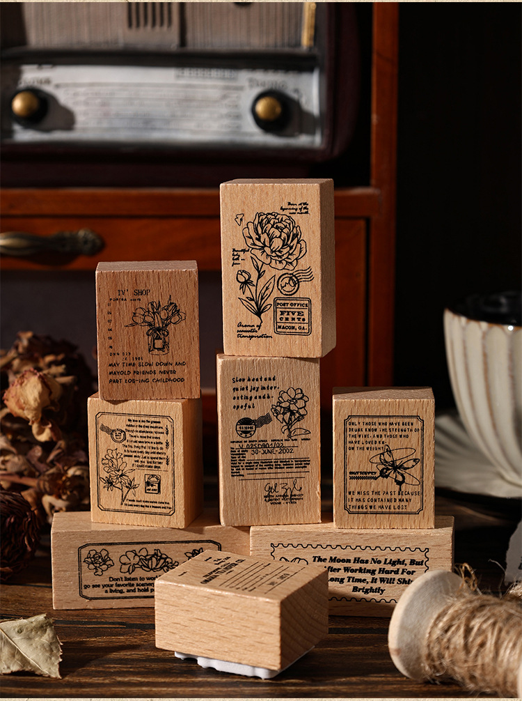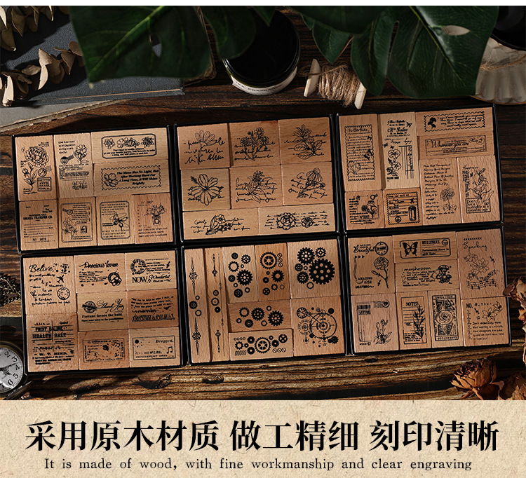 Yuezhen Twilight Mark 나무 스탬프 핸드북 스탬프 국경 간 영어 장식 나무 스탬프 DIY 핸드북 스탬프스토어 가기