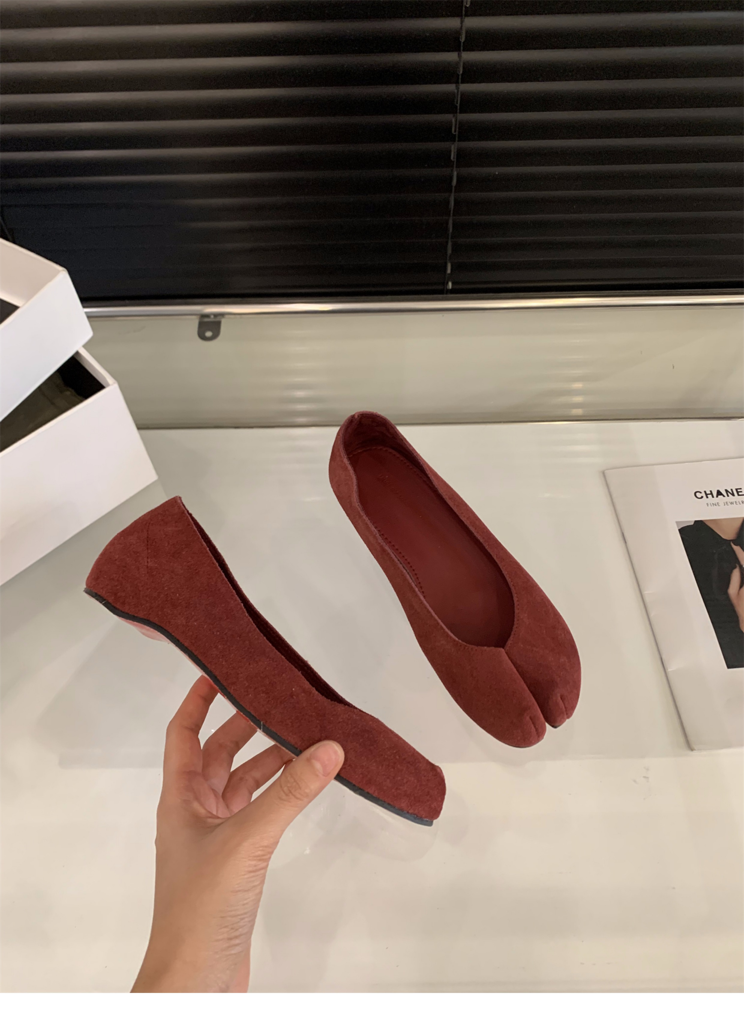여성용 내부 높이 증가 천연 가죽 스플릿 토 돼지발톱 신발 2025 신상 여름 말발굽 돼지발톱 신발 엄지콩 싱글 슈즈