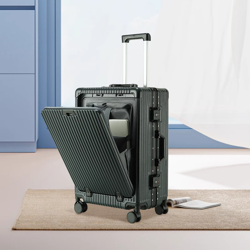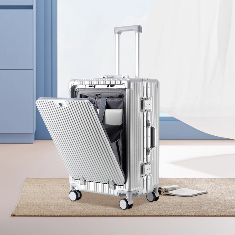 공장 도매 전면 오픈 수하물 가방 20inch 알루미늄 프레임 트롤리 케이스 패션 학생 암호 탑승 가방 선물
