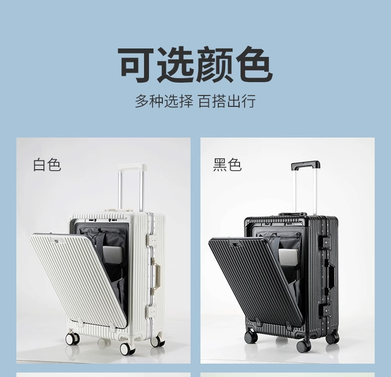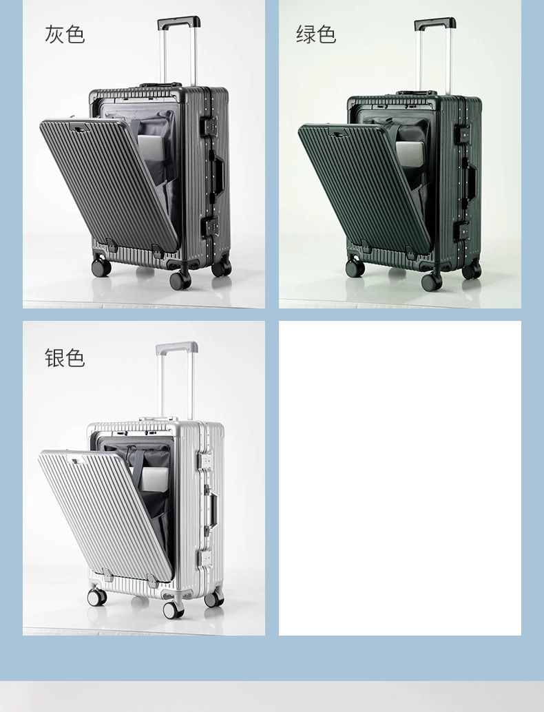 공장 도매 전면 오픈 수하물 가방 20inch 알루미늄 프레임 트롤리 케이스 패션 학생 암호 탑승 가방 선물스토어 가기