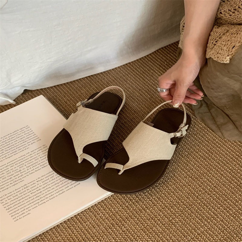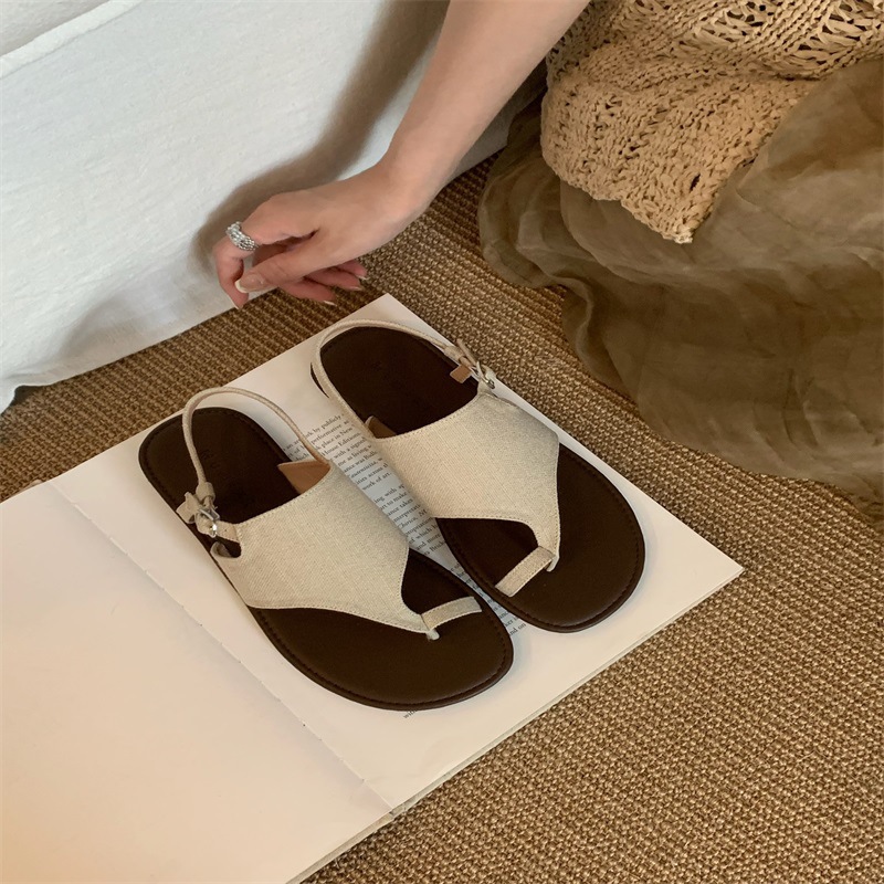 오픈 토우 레드 레트로 소프트 솔 샌들 2025 니치 스커트 여성용 플랫 비치 로마 신발스토어 가기