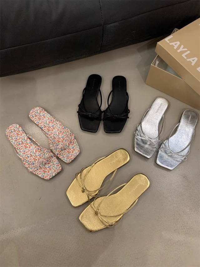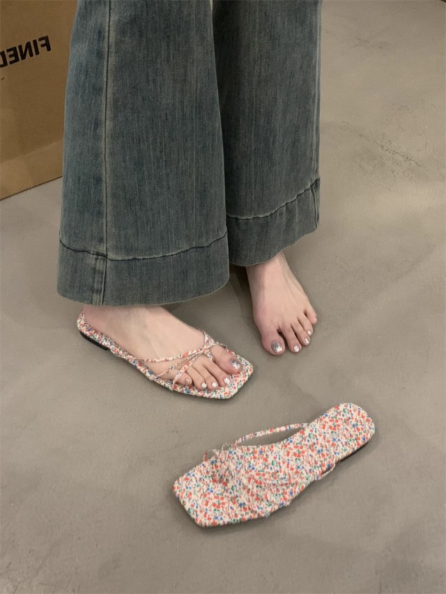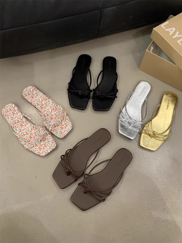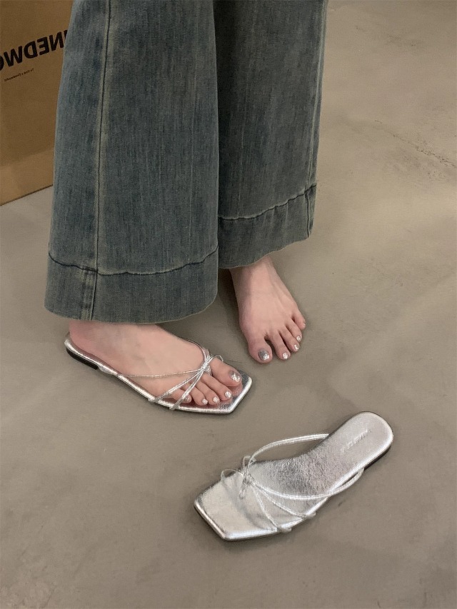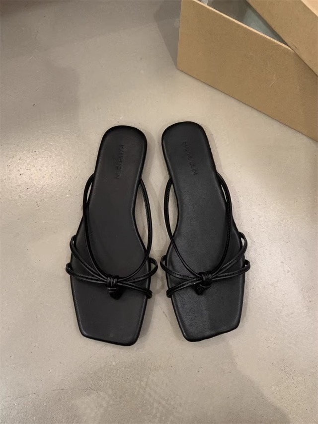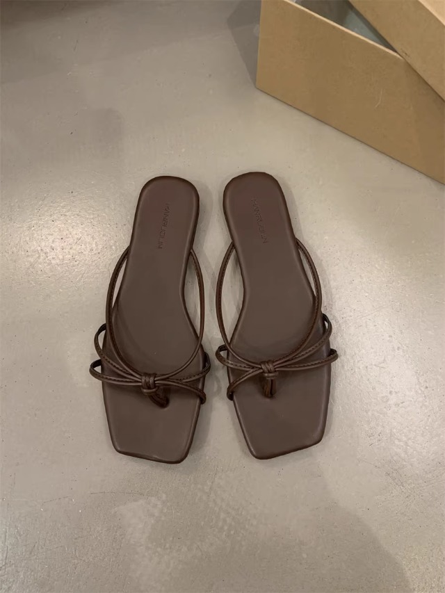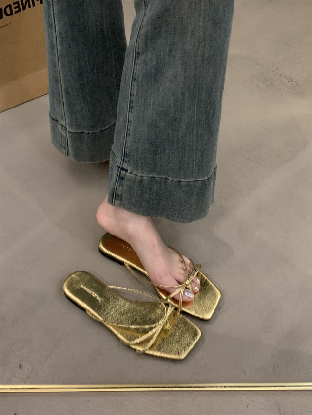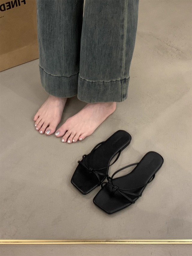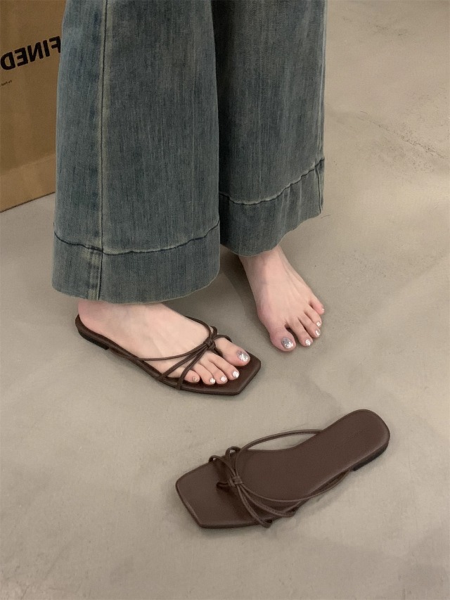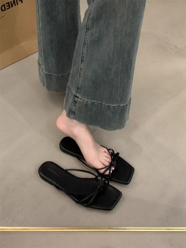 여성을위한 프랑스 복고풍 얇은 스트랩 슬리퍼 2025 새로운 여름 간단한 플랫 바닥 플립 플롭 미끄럼 방지 해변 대형 플립 플롭스토어 가기