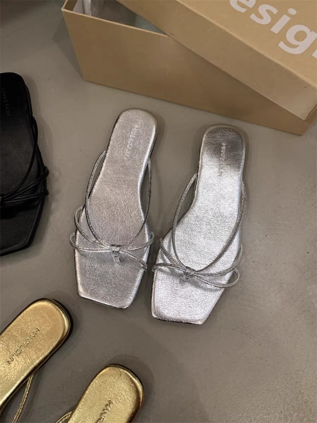 여성을위한 프랑스 복고풍 얇은 스트랩 슬리퍼 2025 새로운 여름 간단한 플랫 바닥 플립 플롭 미끄럼 방지 해변 대형 플립 플롭