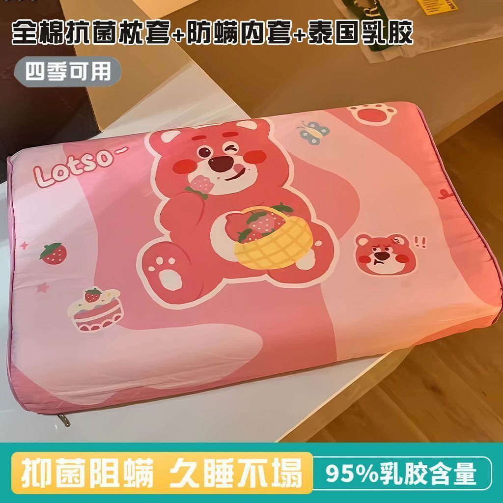 • 업그레이드된 라텍스 베개 - 딸기곰 + 무료 면 베갯잇