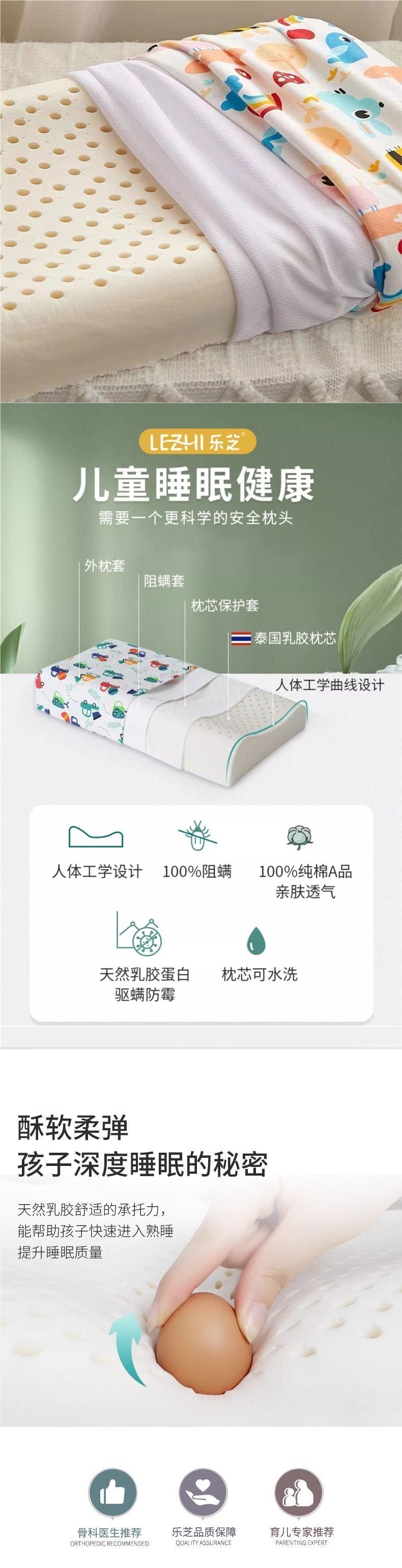 태국에서 수입한 천연 어린이용 라텍스 베개, 유아 및 아기를 위한 베개 코어, 사계절 수면을 돕는 특수 경추 보호대스토어 가기