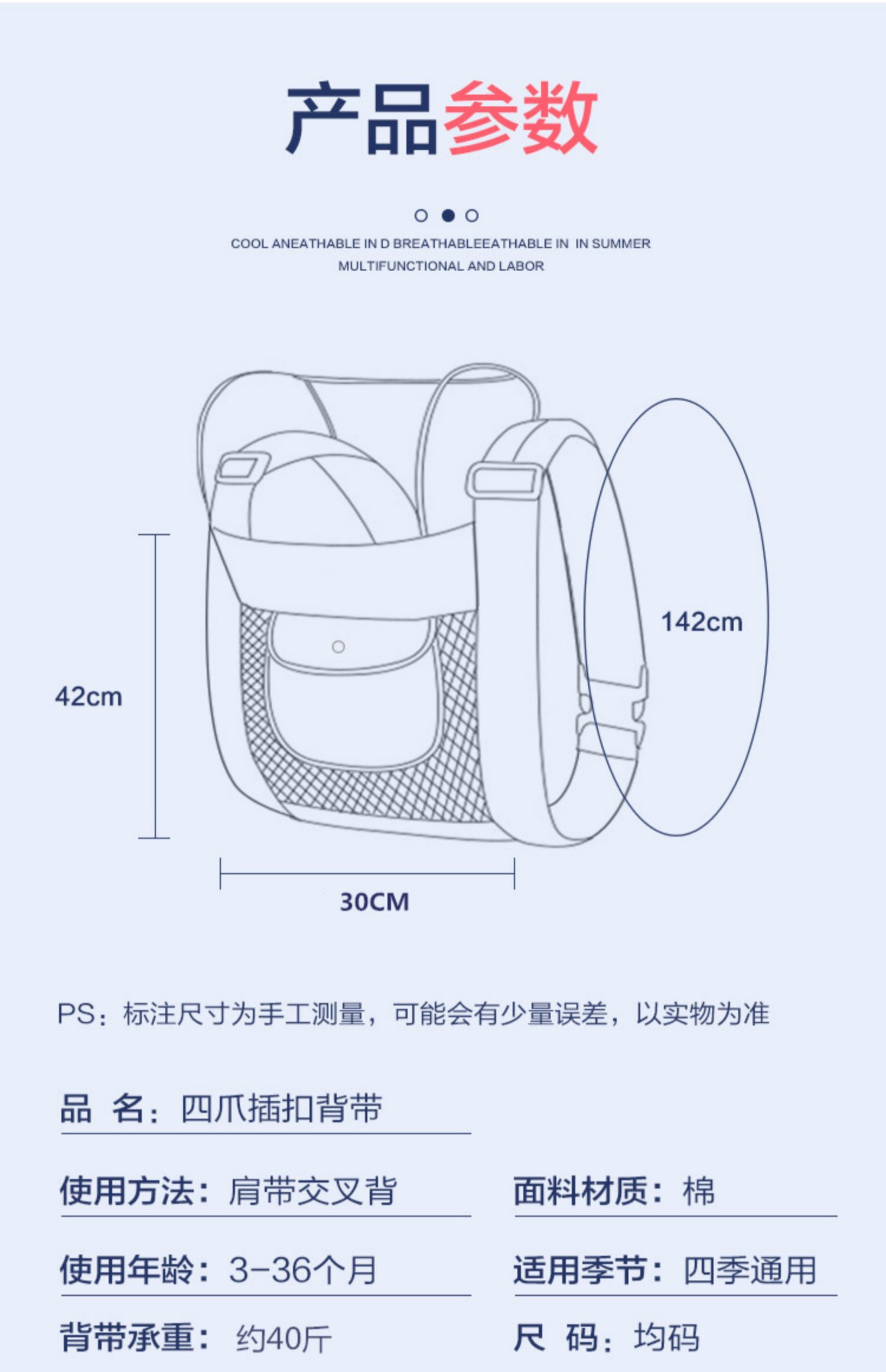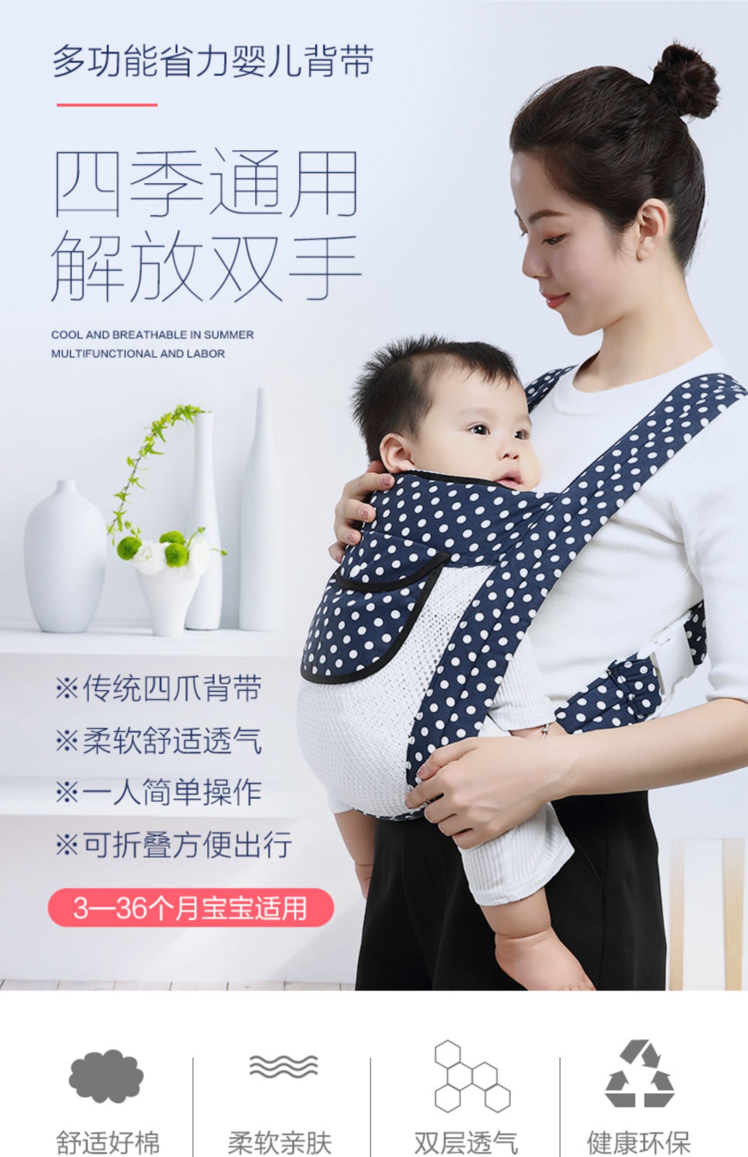 아기의 앞발과 뒷발이 있는 전통적인 아기띠, 다기능 아기띠, 가벼운 순면 아기띠, 통기성이 뛰어난 아기띠
