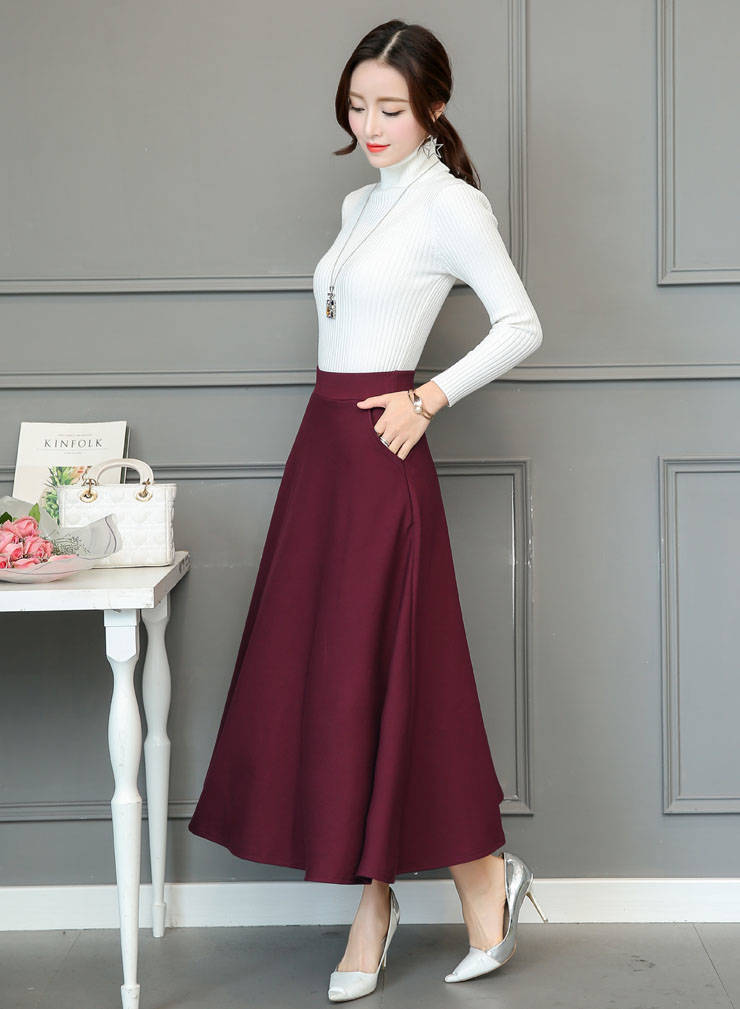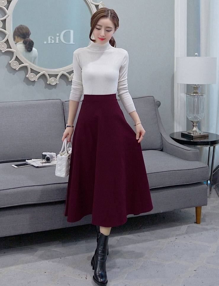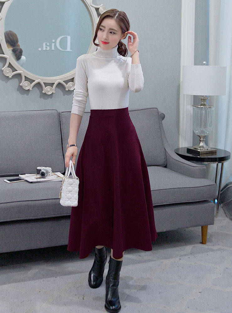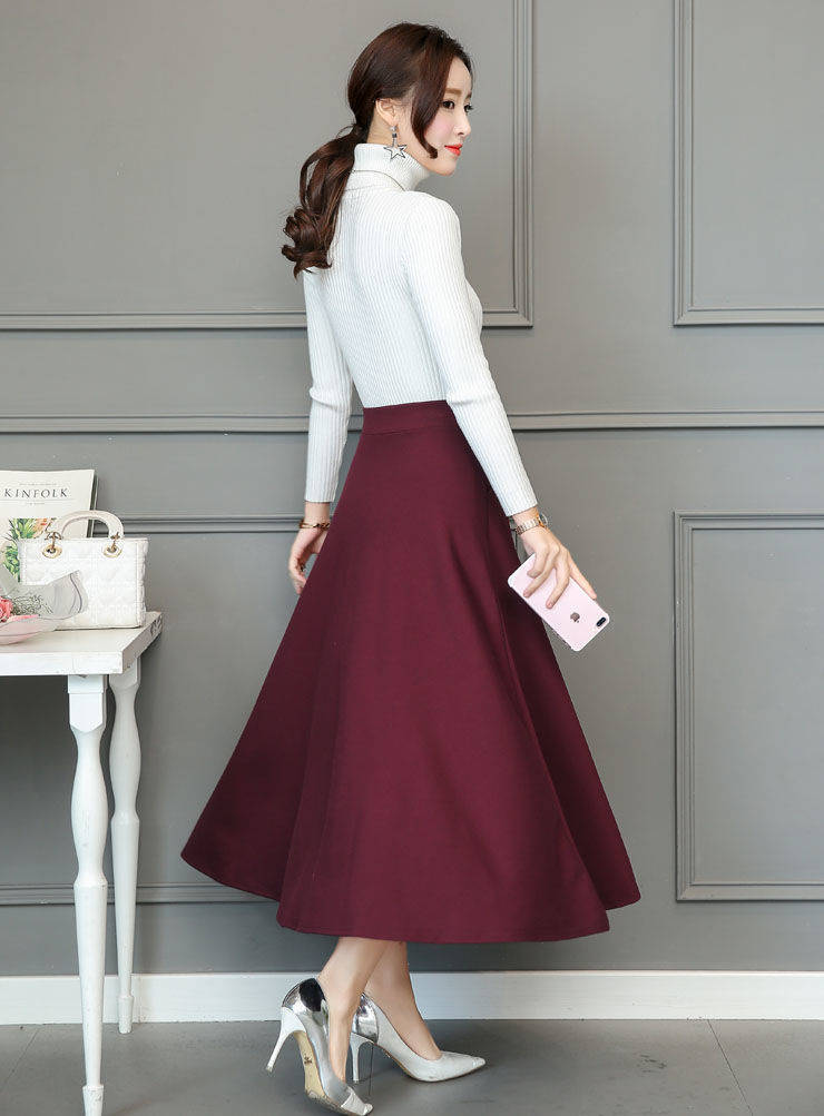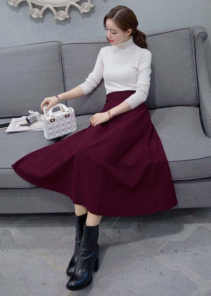 봄과 가을 복고풍 문학 다목적 코튼 하이 웨이스트 슬림 A 라인 스커트 대형 스윙 스커트 플리츠 하프 길이 스커트 여성용 신축성 스커트