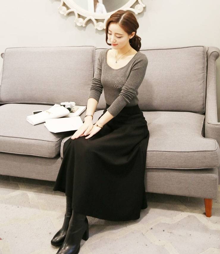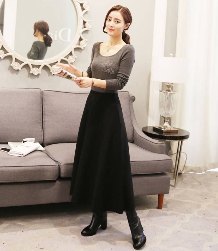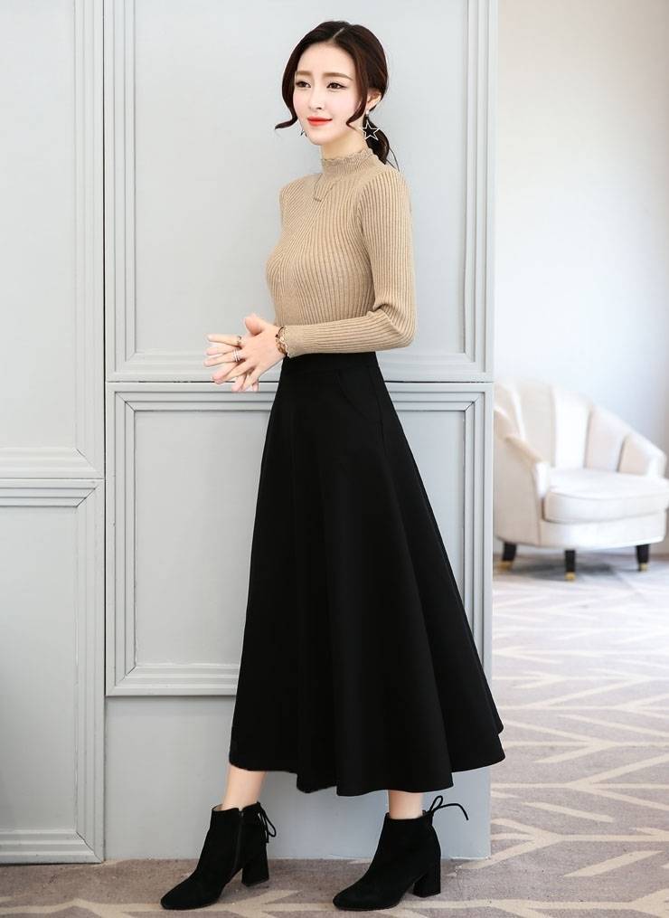 春秋款复古文艺百搭棉高腰显瘦A字裙大摆裙百褶半身长裙松紧裙女