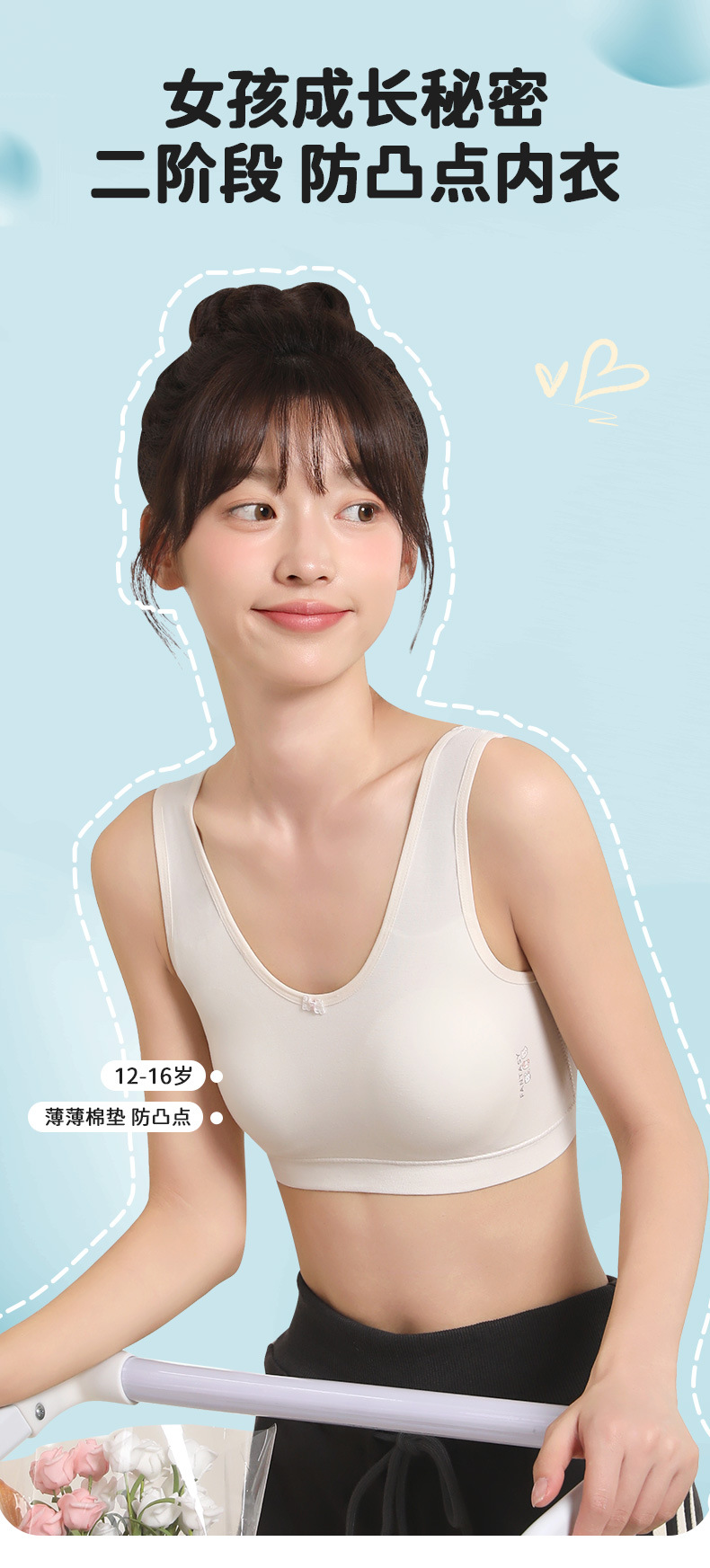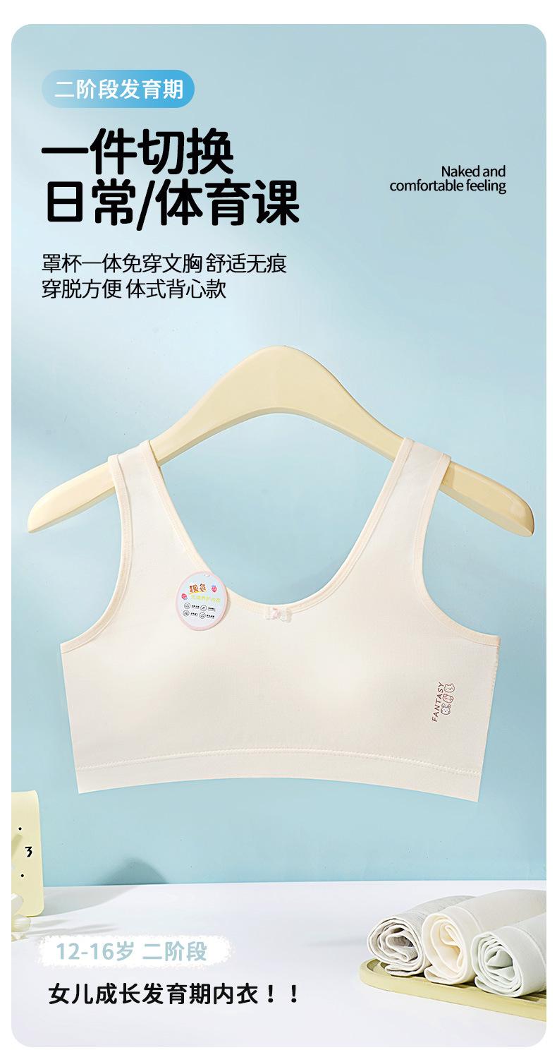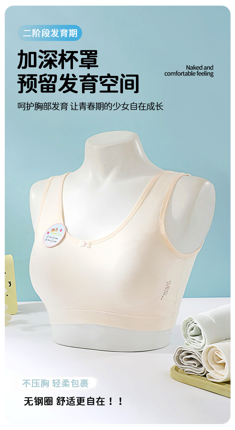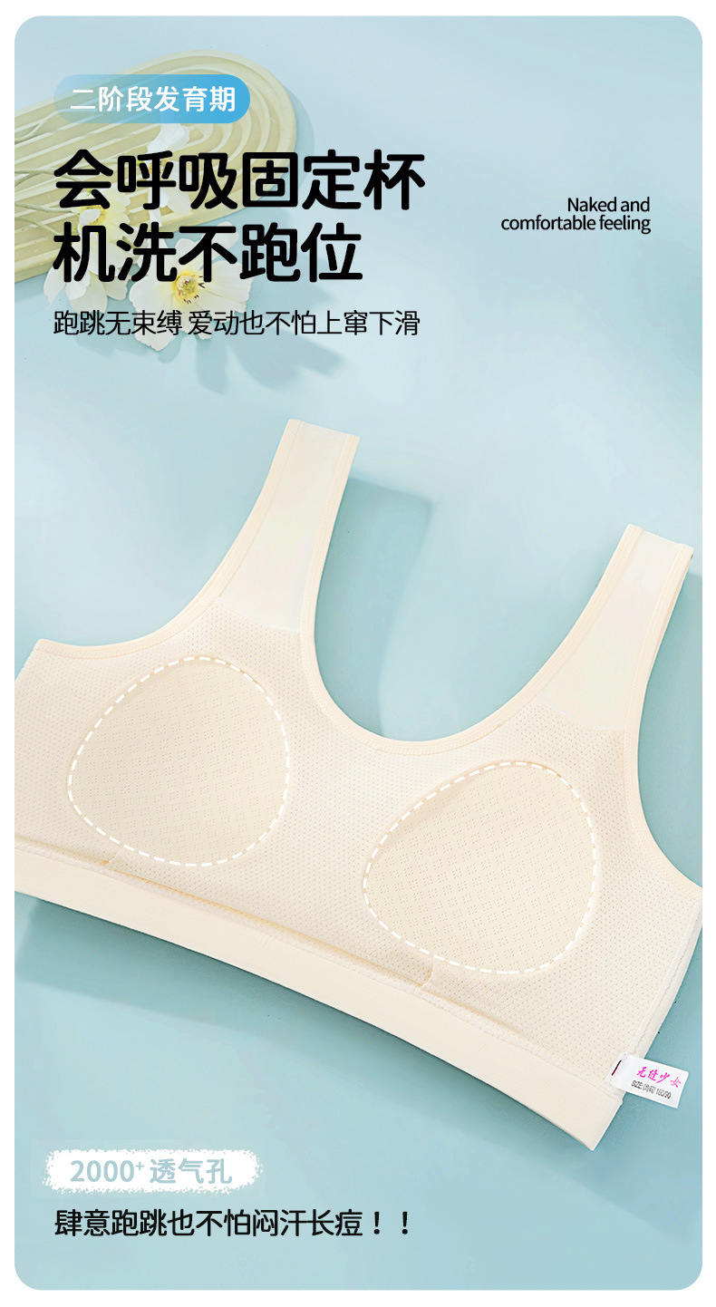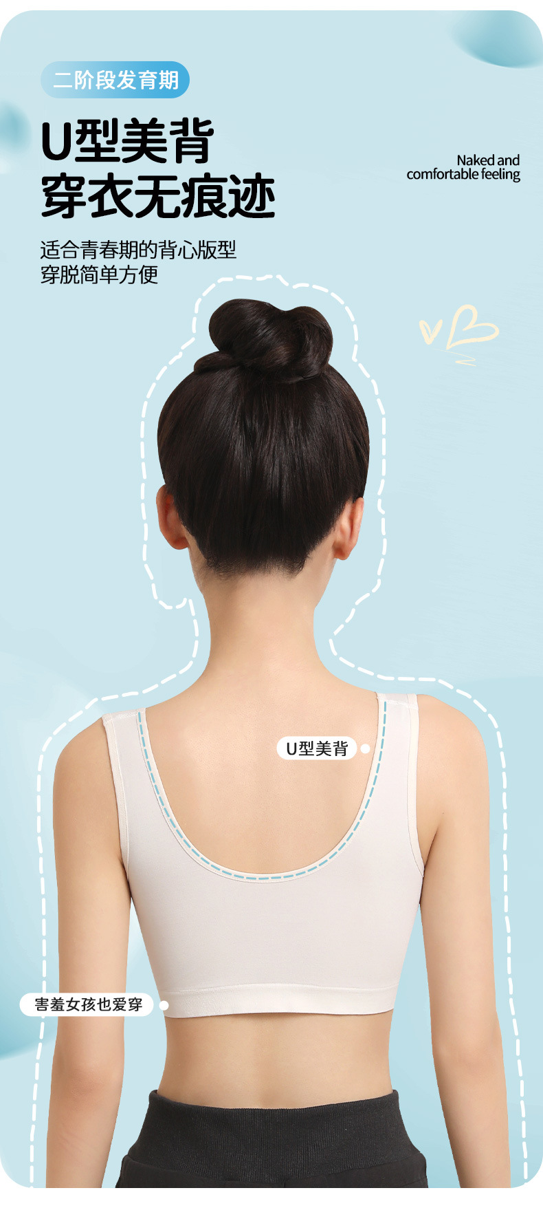 여아 스포츠 브라, 발달기 여아, 중학생, 사춘기 노와이어 속옷, 여름용 얇은 조끼스토어 가기